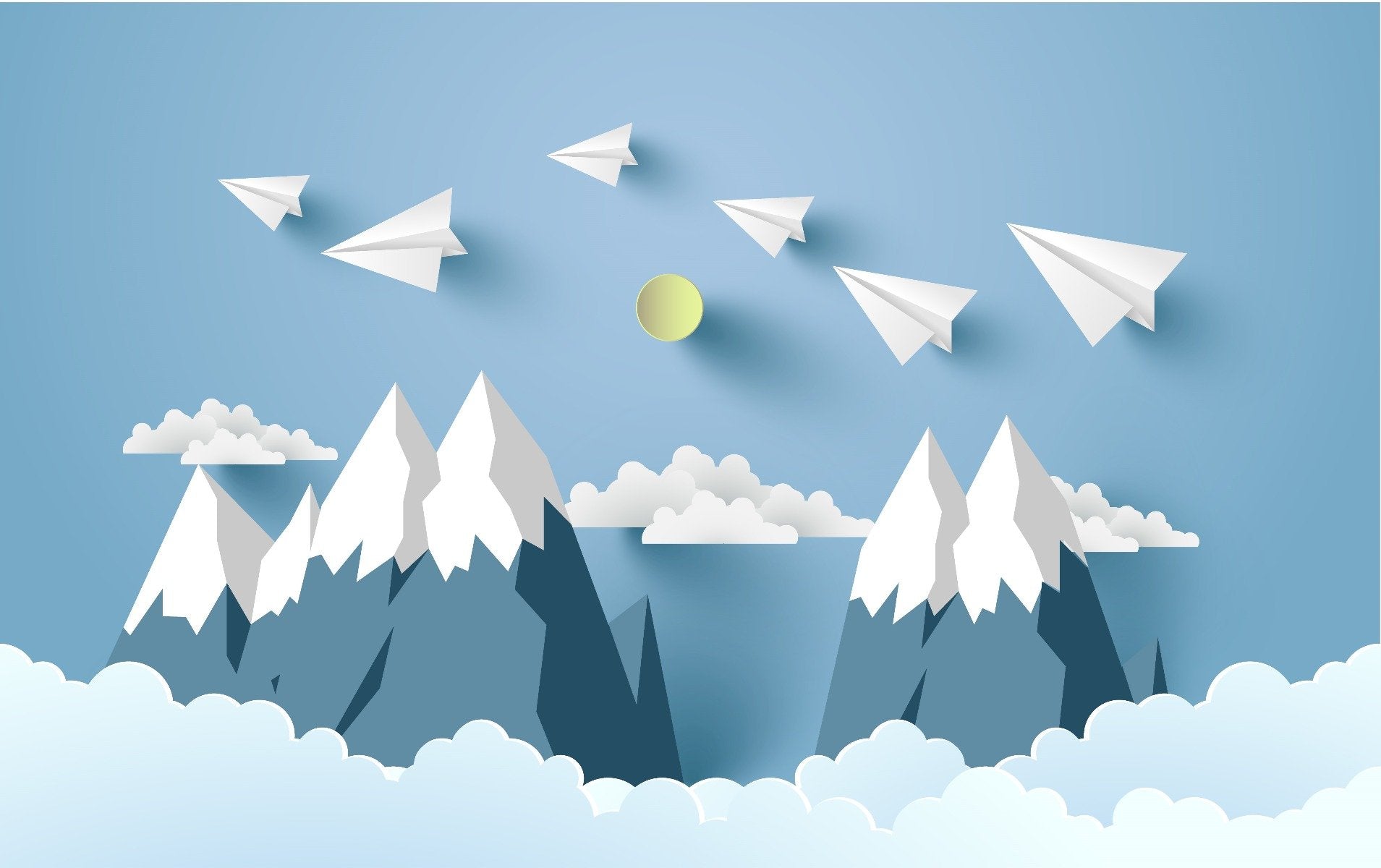 Kids Flying Planes on Mountain Wallpaper Mural design