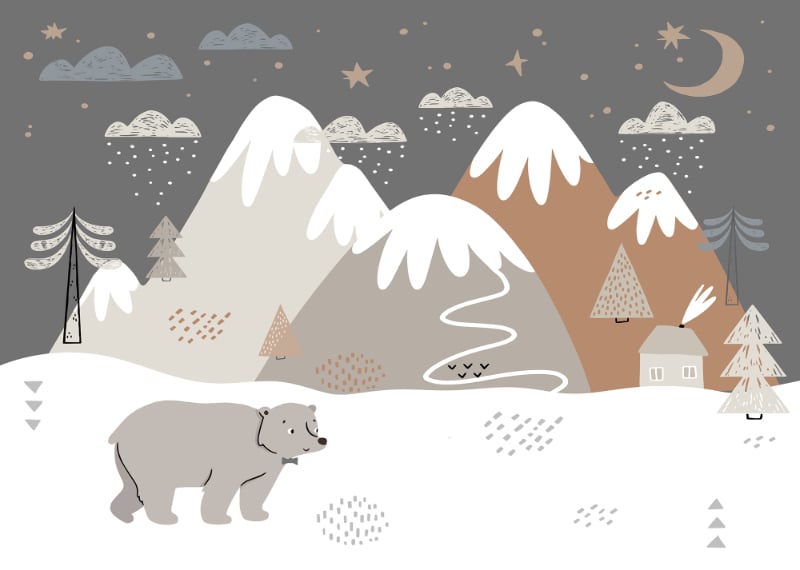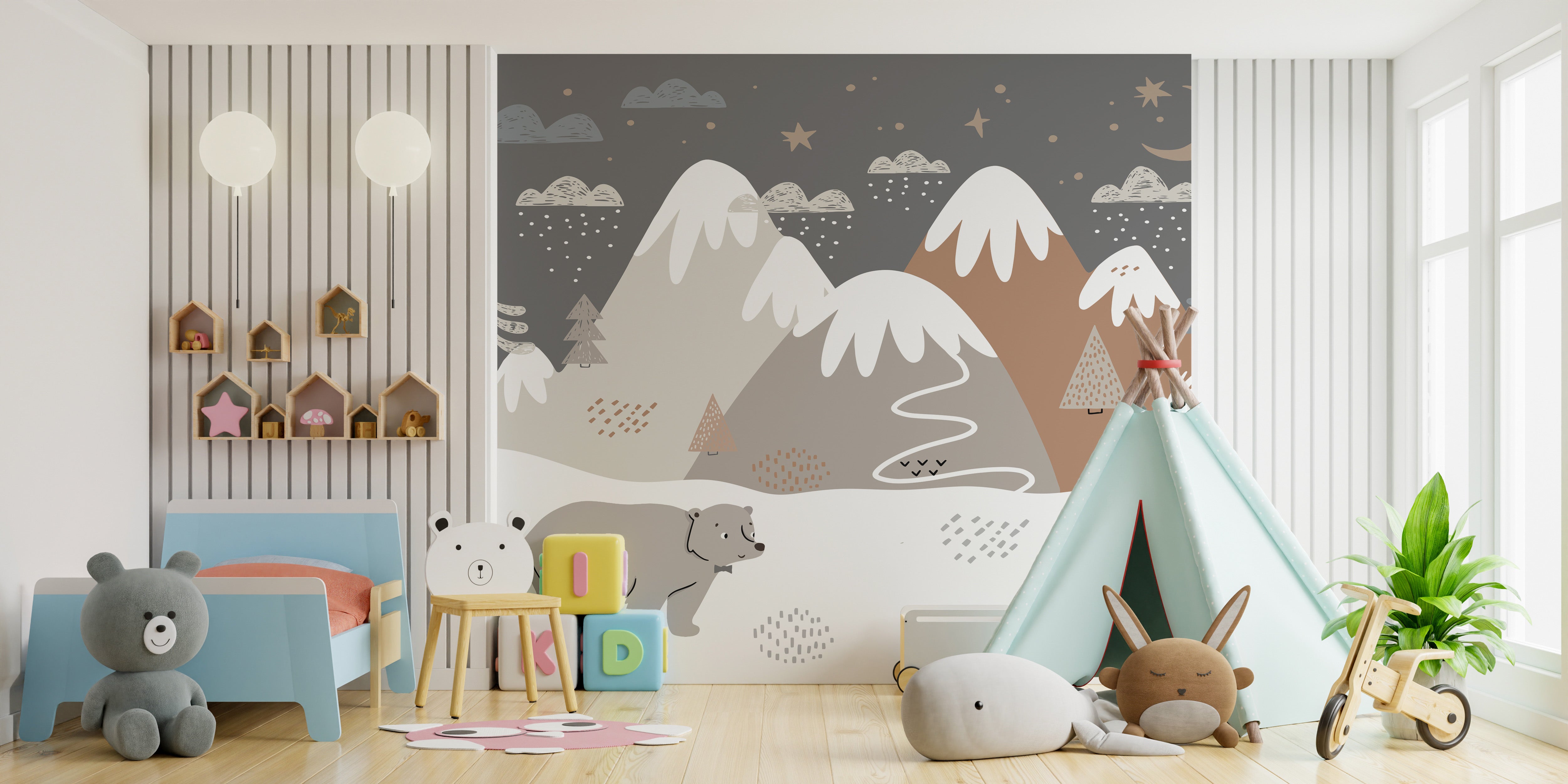 Kids Room Bear Snow Wallpaper Murals - Giffywalls