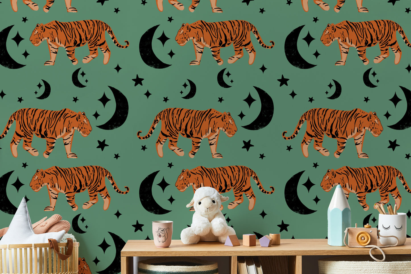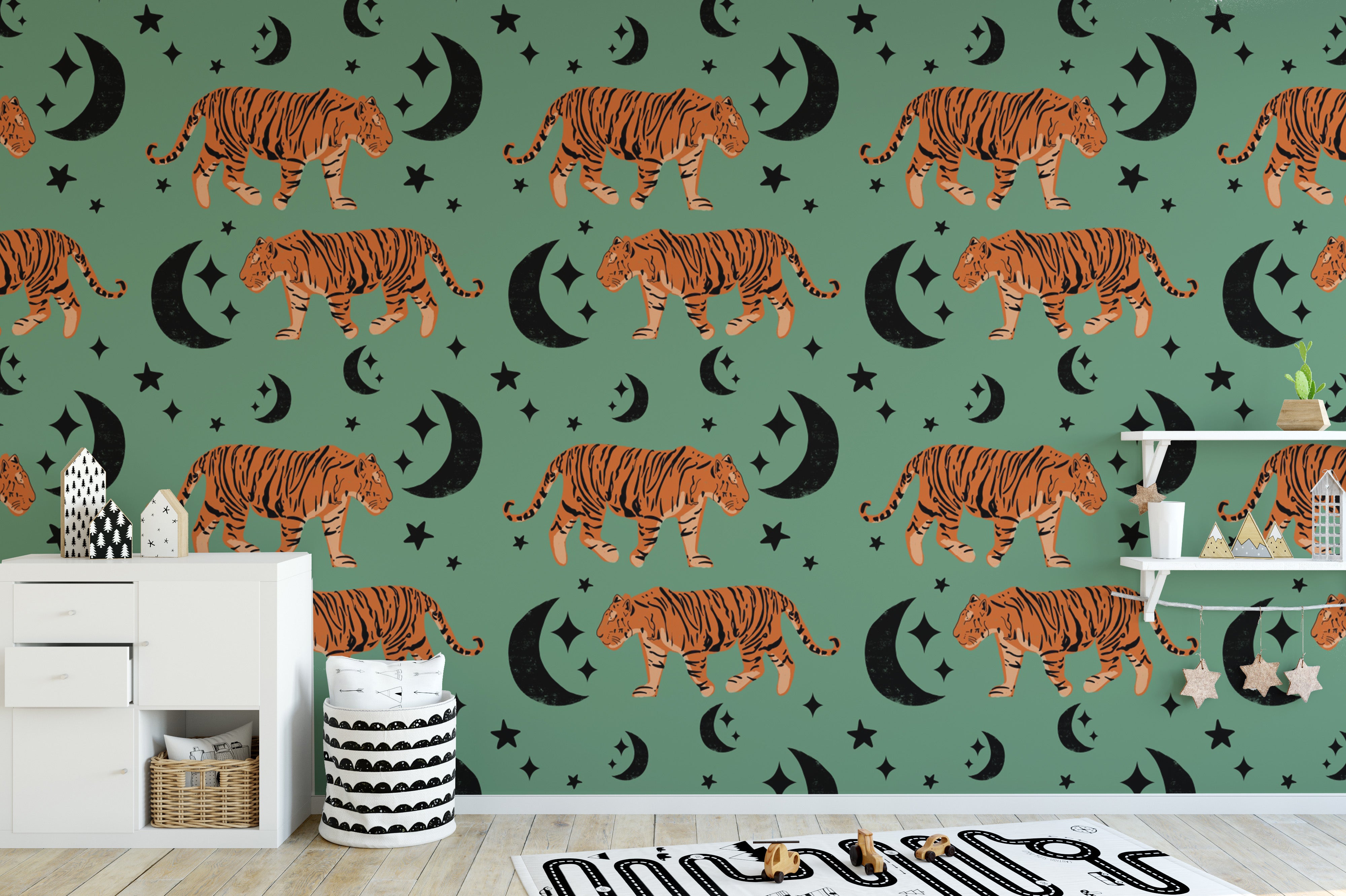 Kids Room Tiger moon green Wallpaper