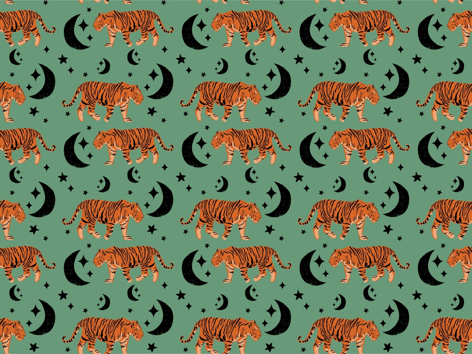 Green tiger design Tiger Moon Kids Wallpaper