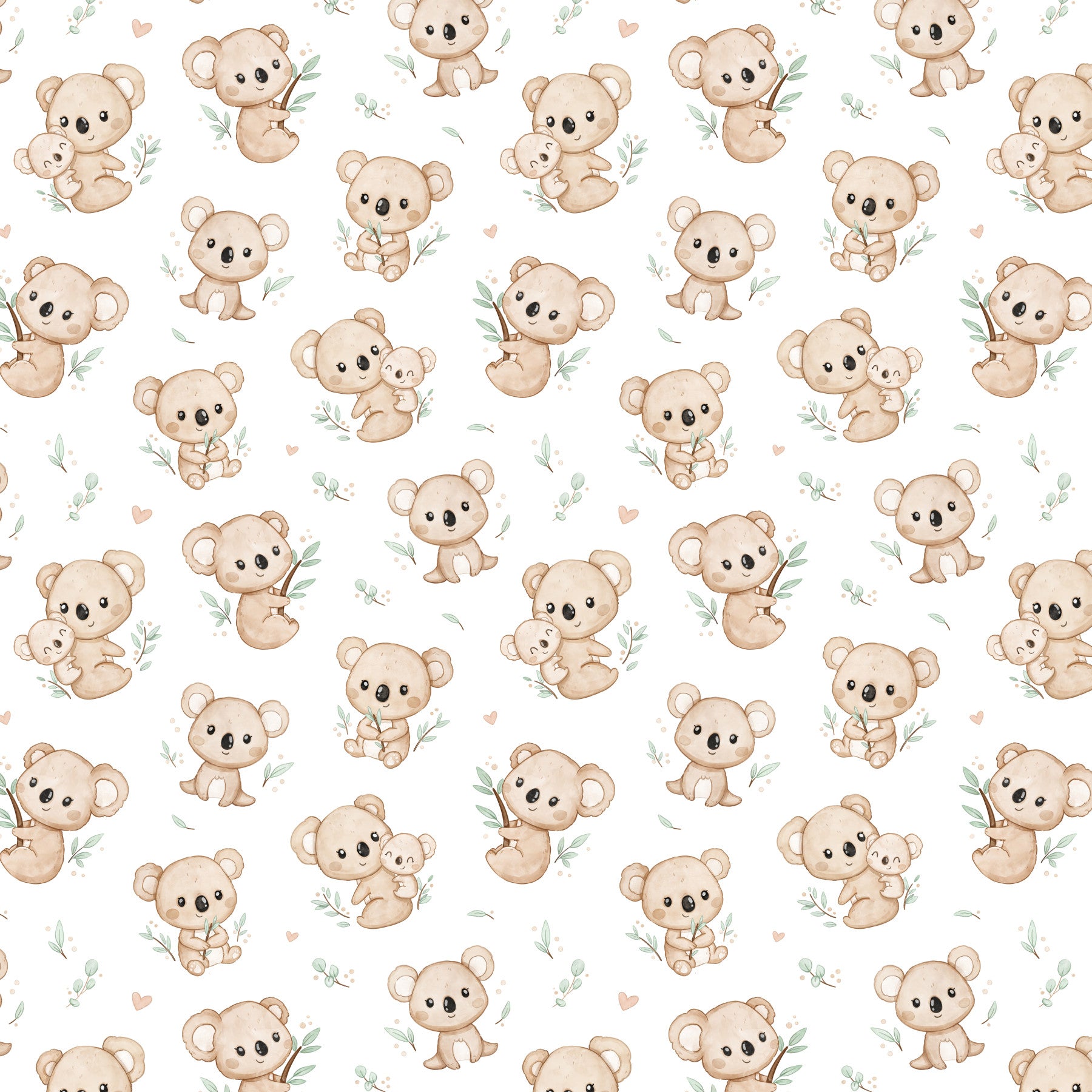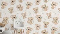 Bring a touch of whimsy and warmth to any room with Koala Cuddles wallpaper. Featuring adorable koalas nestled among eucalyptus leaves, this charming design is perfect for creating a cozy, inviting atmosphere. Ideal for nurseries or children's rooms, it adds a playful yet soothing element to your decor. Let these cuddly creatures inspire joy and comfort, making every day feel like a delightful retreat to the Australian bush. Add character and charm to your walls with this enchanting koala pattern.