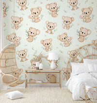 Bring a touch of charm and joy into your home with this delightful wallpaper design featuring adorable koalas. The mint background adds a refreshing and calming vibe, perfect for any room. Ideal for nurseries, bedrooms, or a playful living space, these cuddly koalas bring warmth and character to your walls. Whether you’re creating a fun child’s room or adding a whimsical touch to your decor, this design is sure to inspire smiles and enliven your space with its cute, nature-inspired theme.