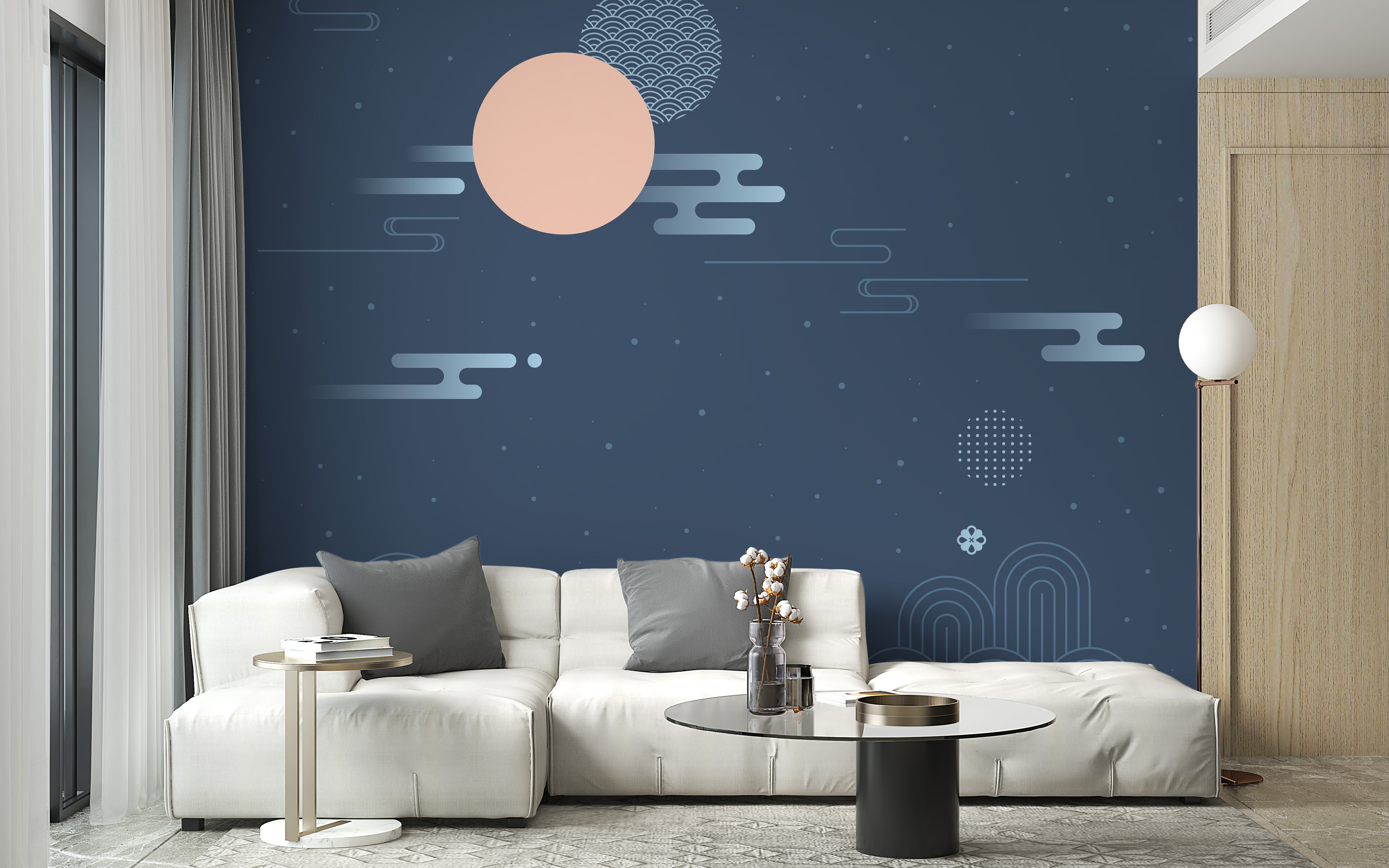Korean traditional cloud wallpaper with moon elements.