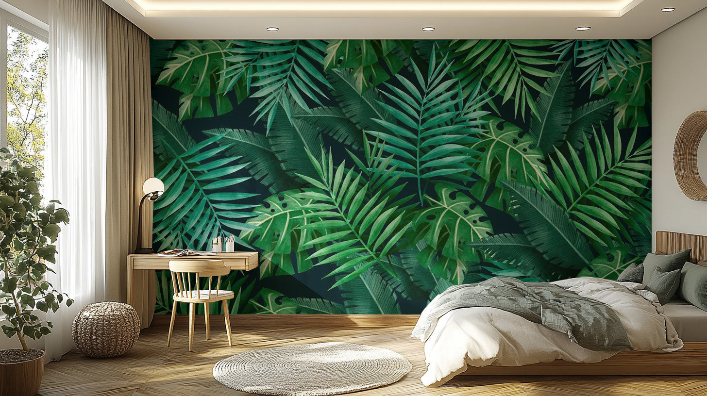 Tranquil Green Leaves Wallpaper Mural for bedrooms