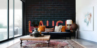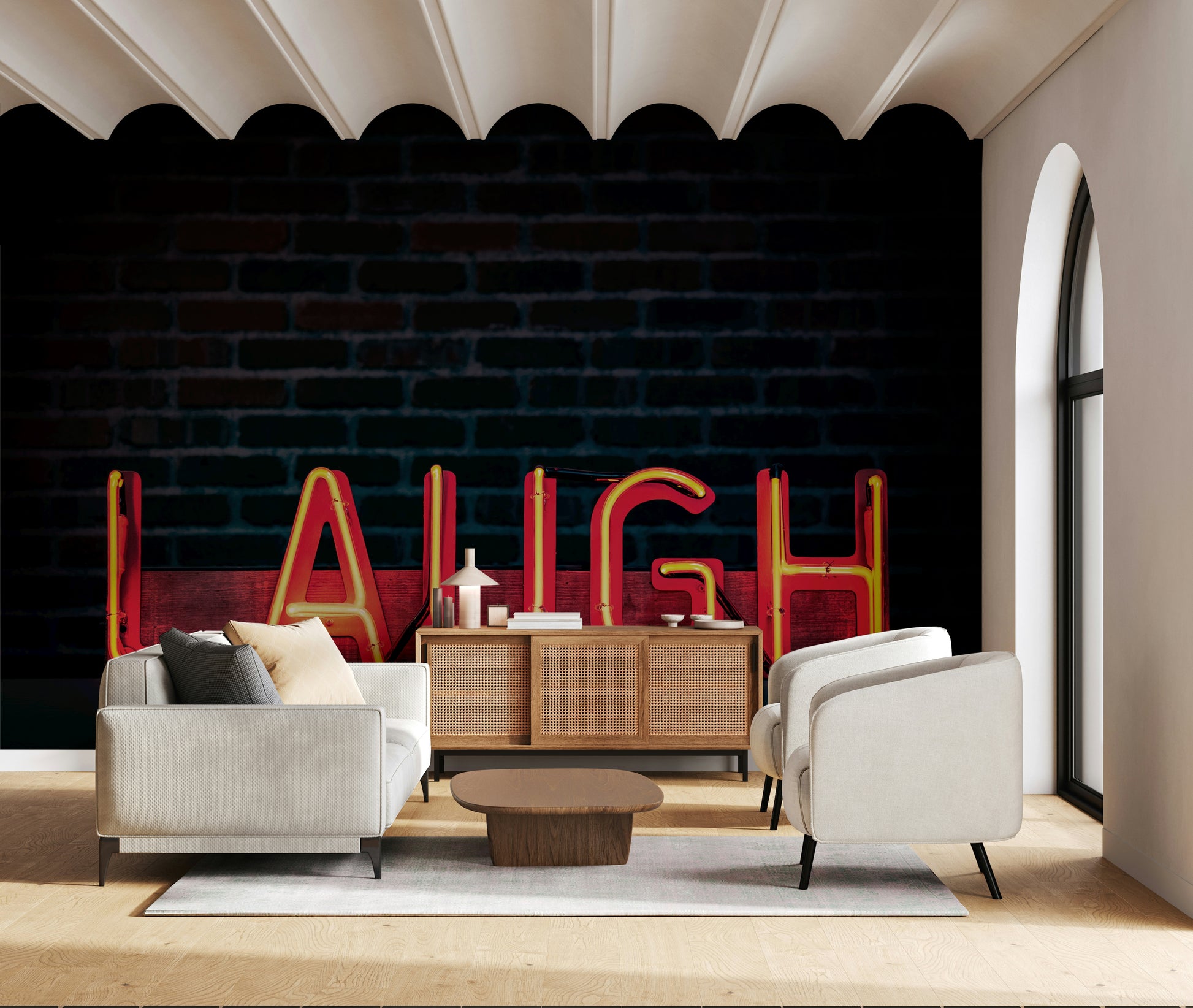 Illuminate your screen with the vibrant energy of "Laugh Neon Glow". This captivating wallpaper features the word 'LAUGH' boldly emblazoned in eye-catching neon, its warm, radiant light cutting through the darkness. The red and yellow neon pops against a textured brick wall backdrop, creating a modern, urban vibe with a touch of retro charm. The contrast between the raw, exposed brick and the smooth, glowing neon captures a playful juxtaposition, making it a visually dynamic piece. Let this image serve as a daily reminder to embrace joy and find the humour in everyday moments. Perfect for adding a splash of colour and a dose of positive energy to your digital space. Let the radiant "Laugh Neon Glow" brighten your day!