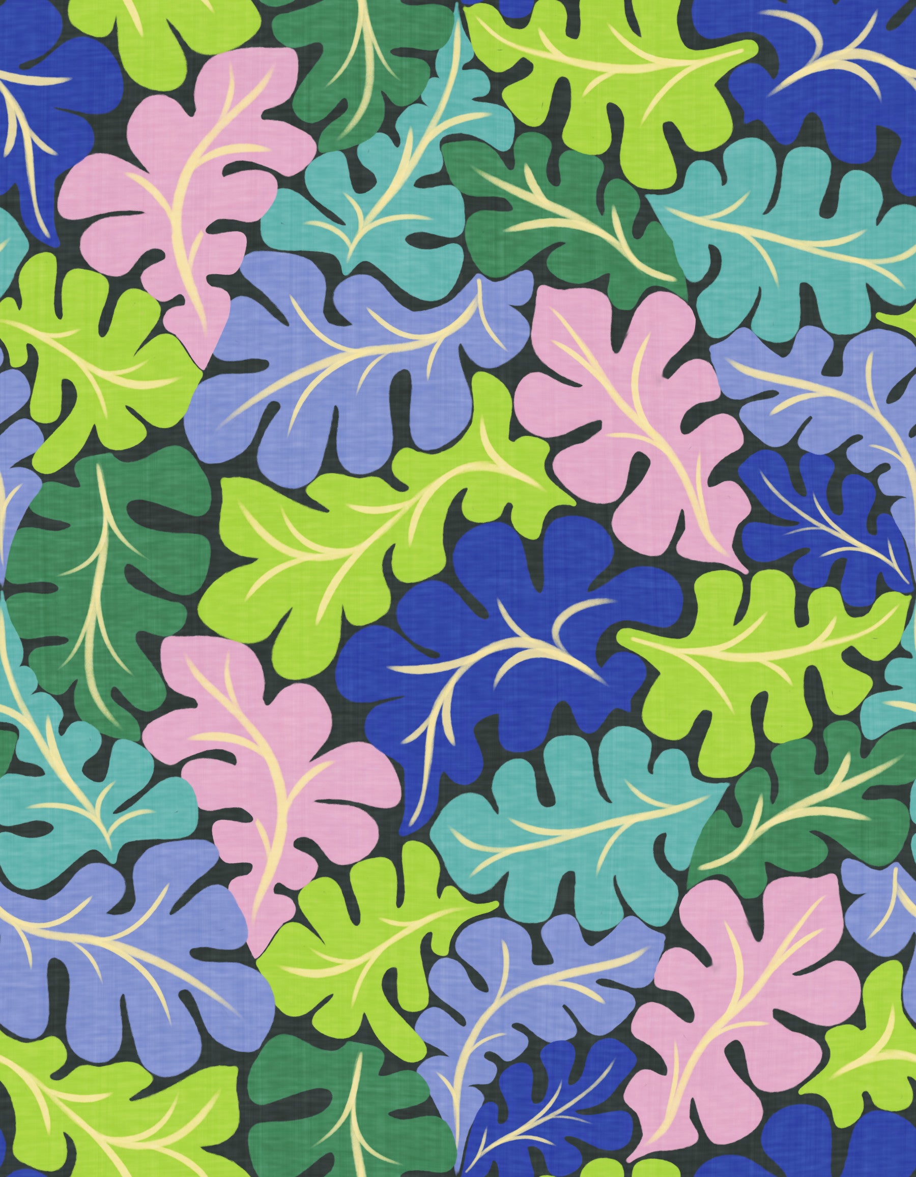 Transform your space with this captivating leaf design. Its vibrant combination of blues, greens, and pinks creates a visually interesting and cheerful backdrop. The overlapping leaf design generates a modern, artistic feel, making it a perfect choice for creative spaces. This wallpaper for walls functions as a vibrant accent in living rooms and brightens up bedrooms, kid's rooms, or even hallways. It enhances modern interiors, promoting energy and style.
