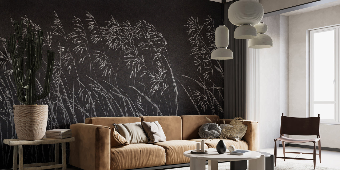 The ink-brushed reed mural wallpaper is the perfect addition to any space looking for an elegant touch. The reed wallpaper pattern is a classic design that is always in style, and the black wallpaper colour adds a touch of sophistication and class. This mural wallpaper is sure to make a statement in your room without overwhelming it. The intricate details of the reed pattern create a calming and peaceful atmosphere in the room. If you're looking for a way to enhance the aesthetics of your space without going over the top, the Ink Brushed Reed mural wallpaper is just what you need.