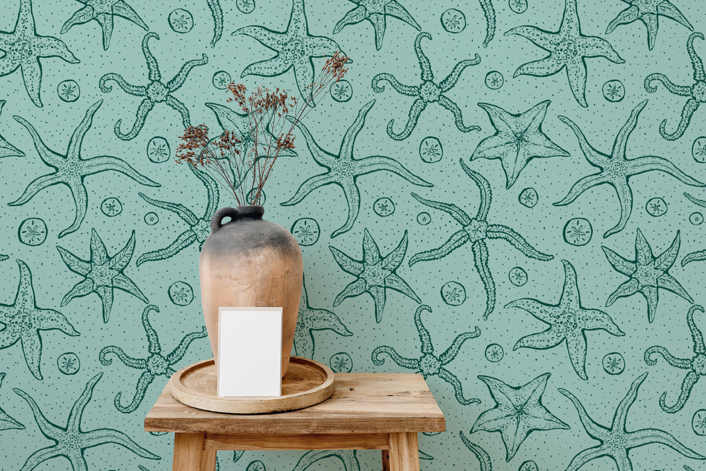 Nature-inspired light blue echinoderms mural for fresh, airy spaces.