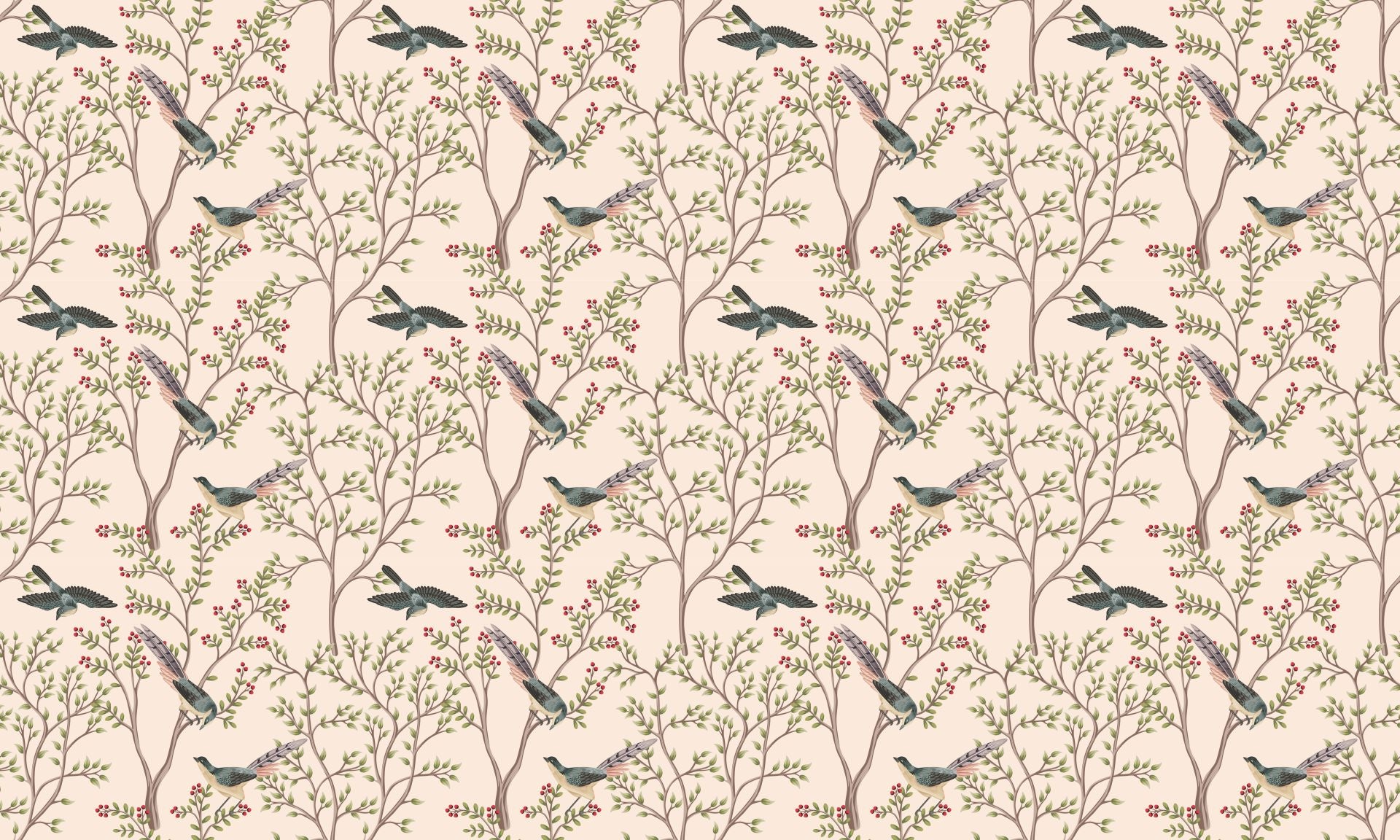 A beautiful mural wallpaper can be a piece of art that transforms an entire room! This chinoiserie birds and foliage blush pink colour design is the perfect example of wallpaper that truly stands out. It depicts a wonderfully detailed scene, complete with bright and bold birds, delicate foliage, and a charming pink colour scheme. This mural creates a unique and visually stunning feature in any space, adding both depth and character to your home. It's a fantastic way to add a statement piece that you can enjoy every day!