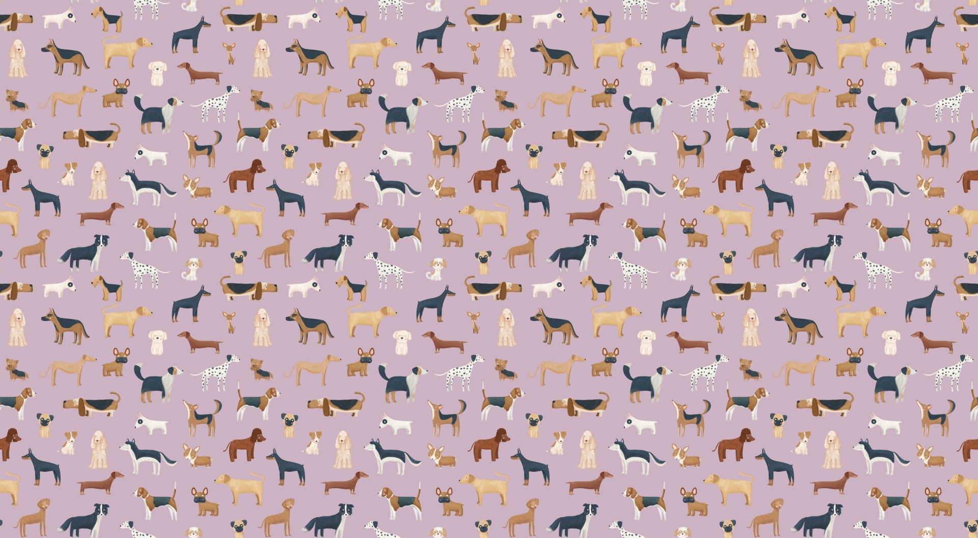 Lilac wallpaper with fun dog illustrations