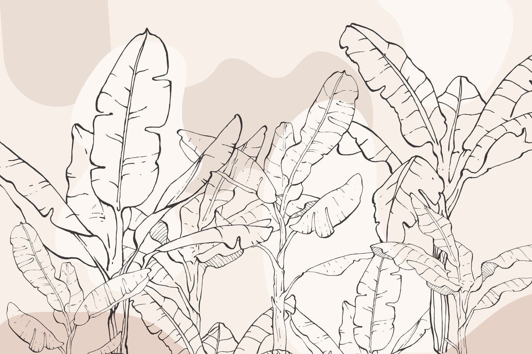 This wallpaper design features outlined banana leaves against a soft beige background. It adds a touch of nature with a minimalist style, suitable for various rooms. The neutral palette makes it versatile. It can brighten up a hallway, bring a calm vibe to a bedroom, or create a relaxing atmosphere in a living room. This wallpaper for walls will give interiors a clean and organic aesthetic. Its simple design allows it to blend effortlessly with modern or bohemian decor. The natural theme brings a serene feel to any space.