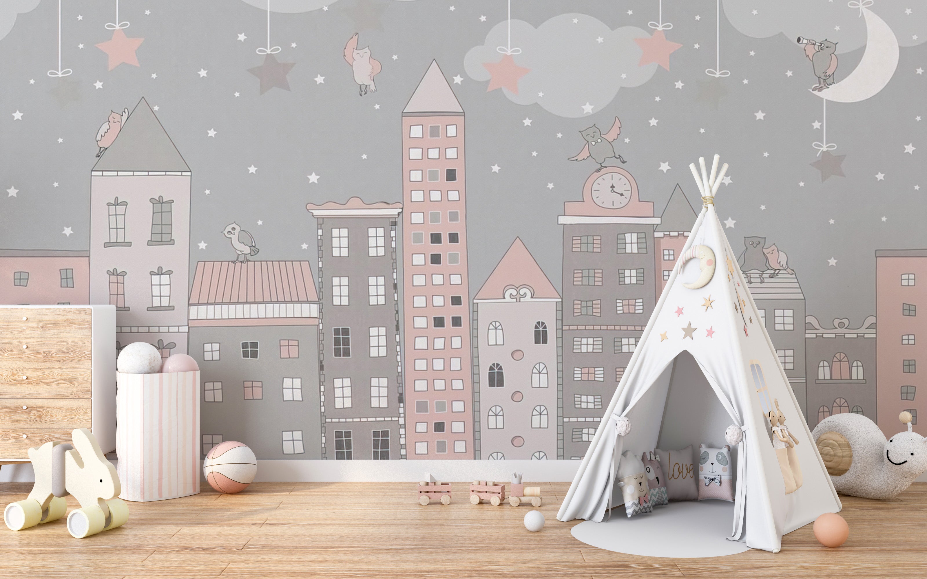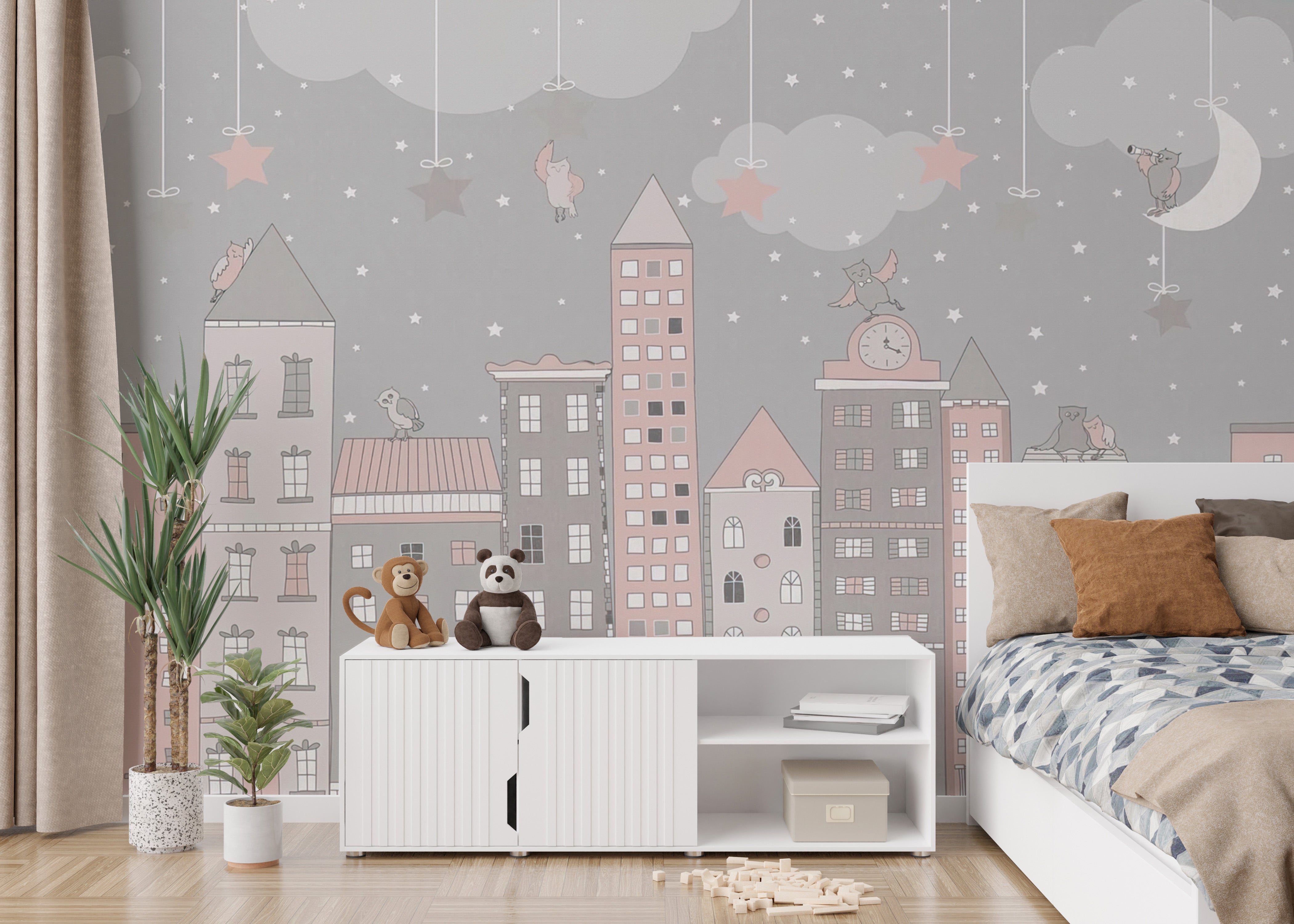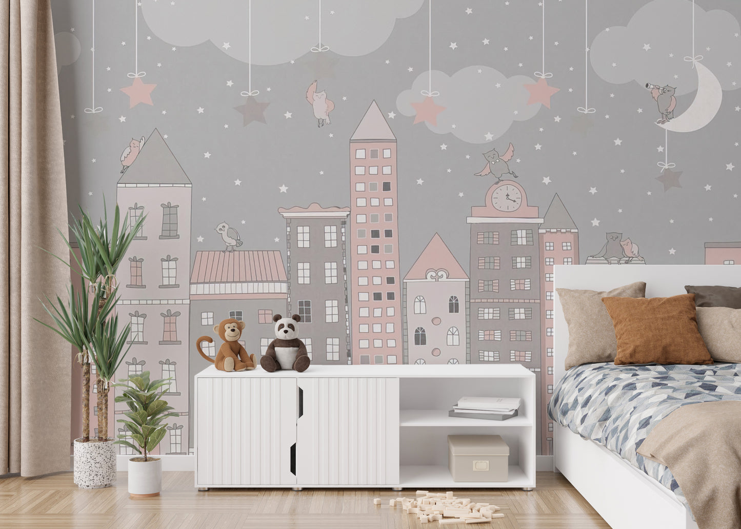 Drawing inspiration from dreamy urban landscapes, this mural captures the essence of bustling city life through the eyes of a child. Sketched buildings, playful vehicles, and charming street scenes come alive on the canvas, ensuring that your child's room becomes a hub of endless stories and adventures.
