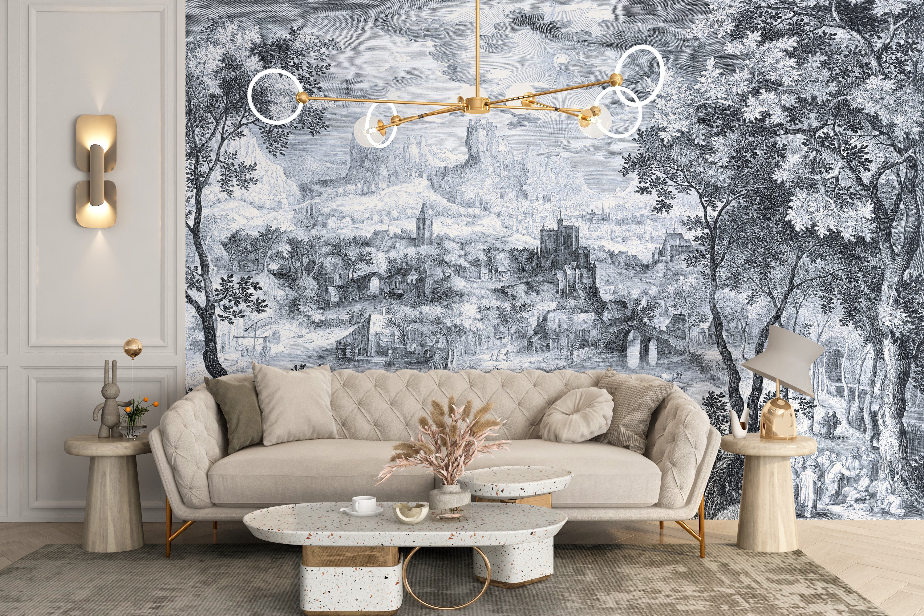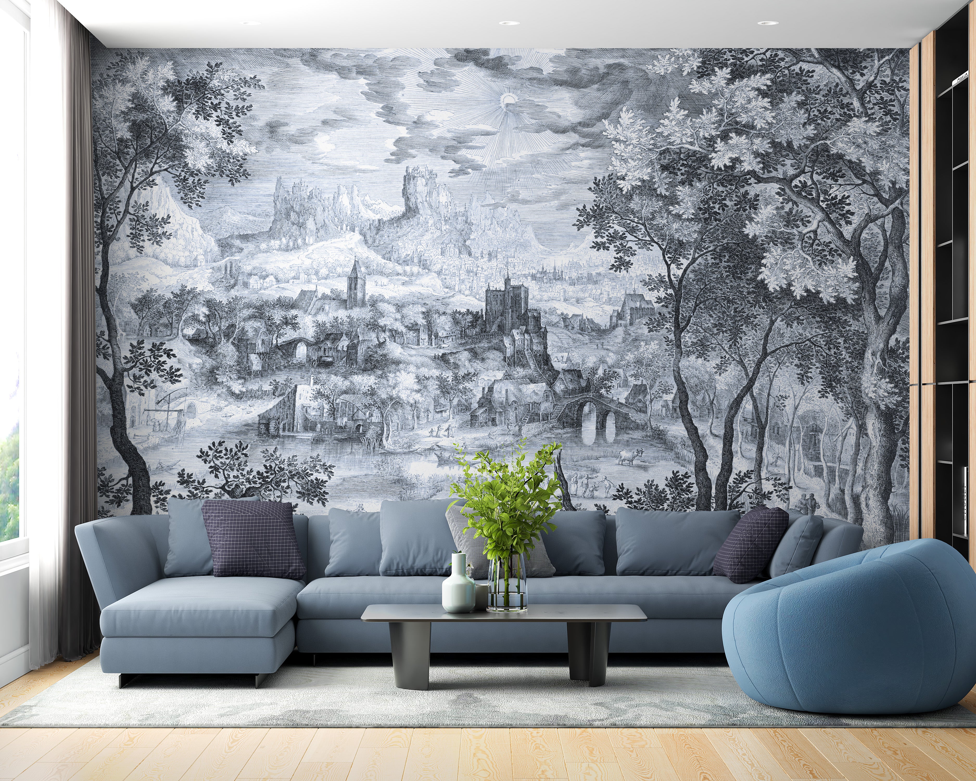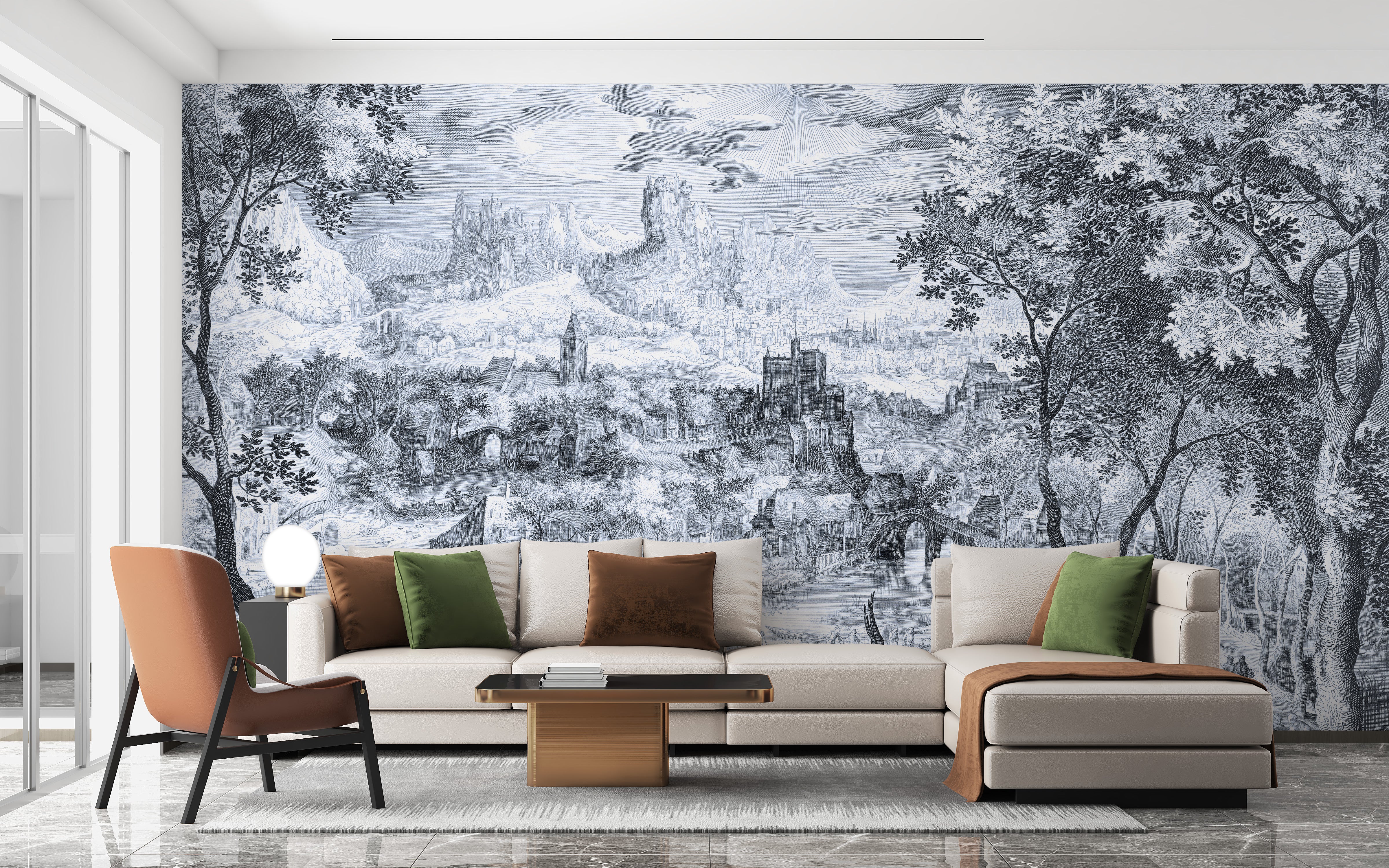 Countryside wallpaper mural with fine details