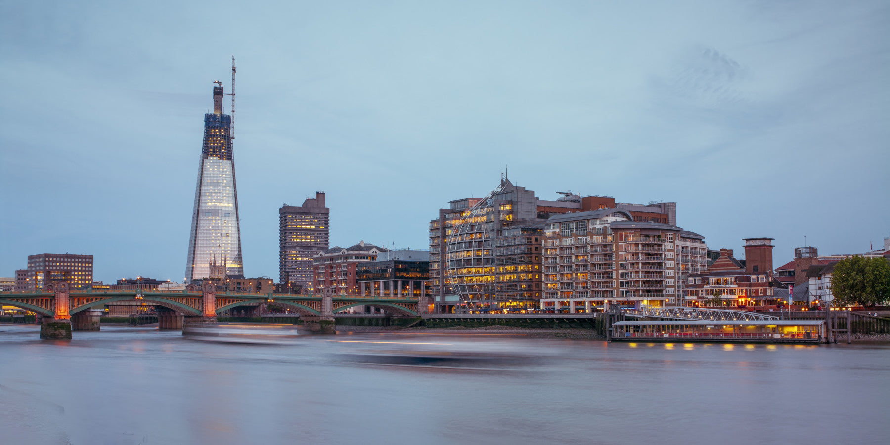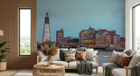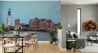 London skyline over the river Thames. Transform your space with "London Luminescence," an exquisite piece capturing the magic of London at twilight. Witness the city's iconic skyline, dominated by the striking Shard, illuminated against a serene, dusky sky. The Thames River, blurred by the motion of unseen boats, adds a dynamic element to the tranquil scene. Golden lights spill from the surrounding buildings, creating a warm contrast to the cool tones of the evening. This wall décor brings the captivating energy of London into your home, offering a sophisticated and modern aesthetic. It's more than just a wall covering; it's an invitation to embrace the enchanting atmosphere of a world-class city. Experience the timeless allure of London, brought to life in a stunning visual narrative that will elevate any room.