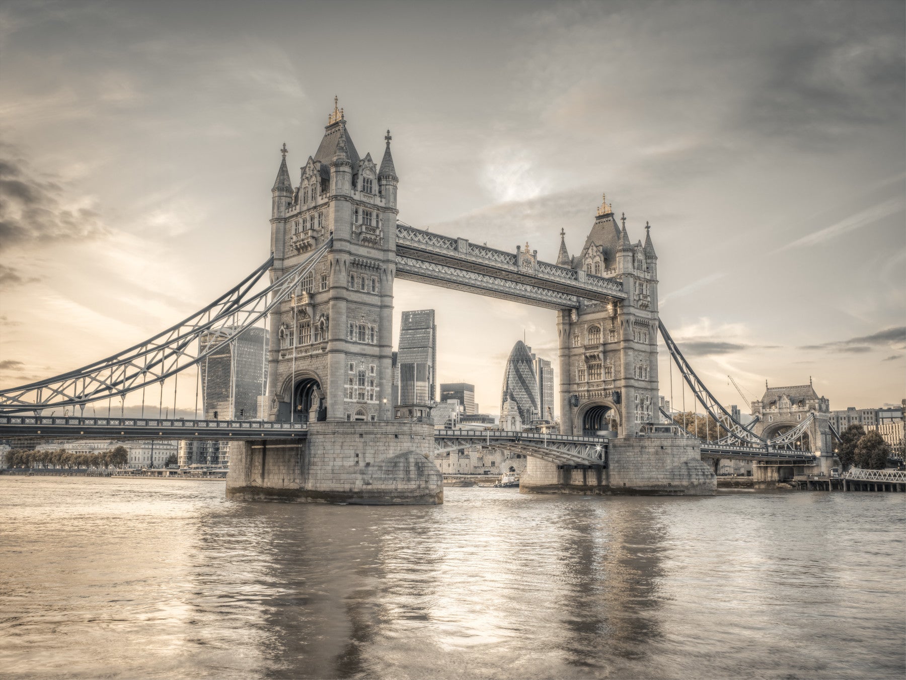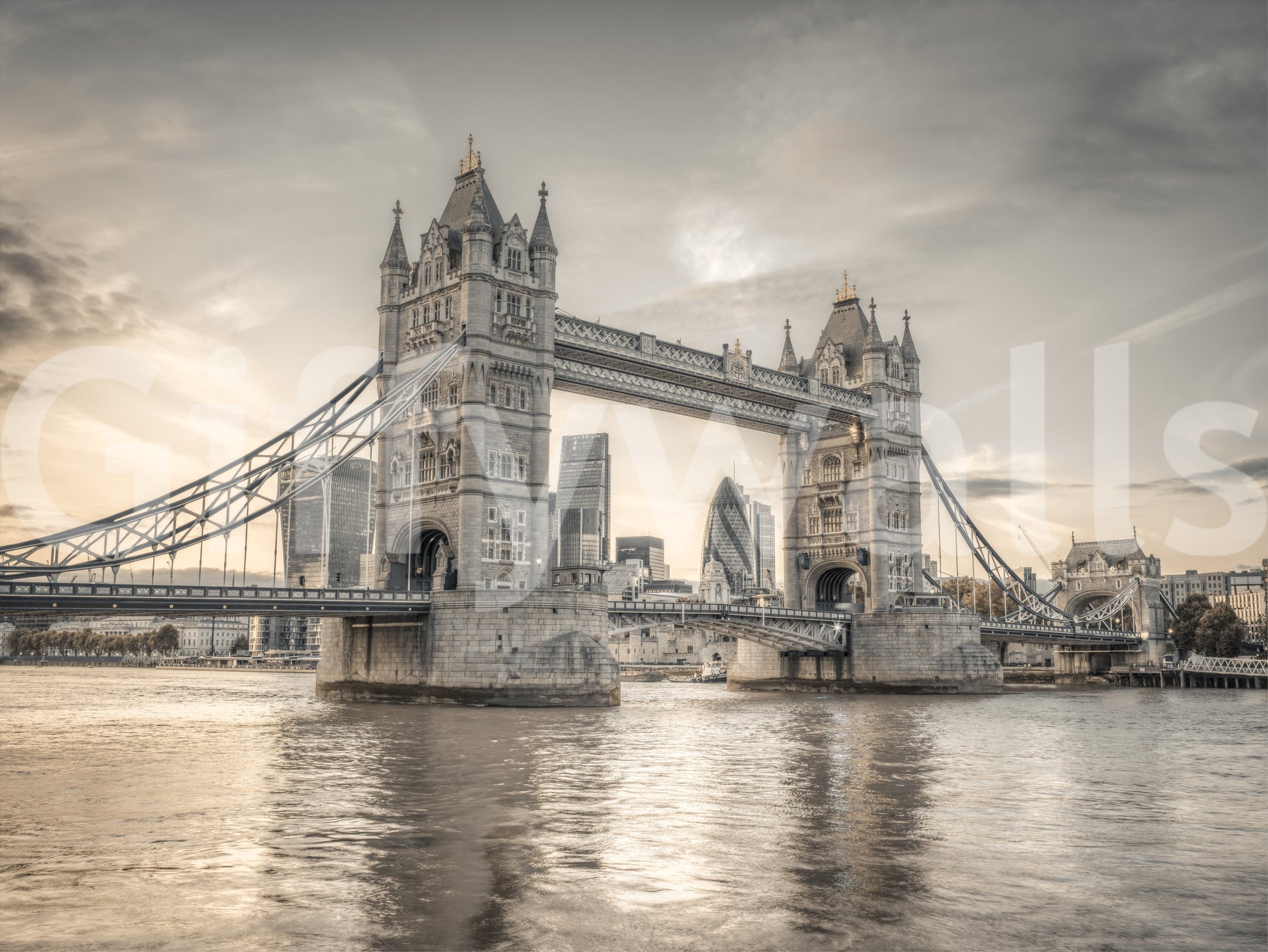 Tower Bridge over River Thames, London. Capture the essence of London with this stunning wallpaper for walls, showcasing the iconic Tower Bridge. Its detailed architecture and sepia-toned palette create a timeless, sophisticated atmosphere. This design brings a touch of British elegance to your living room, dining room, or home office. The neutral tones blend seamlessly with various interior styles, from modern minimalist to classic traditional. This wallpaper for walls makes a bold statement, adding depth and character to any space. Enhance your home with a touch of history and architectural beauty.