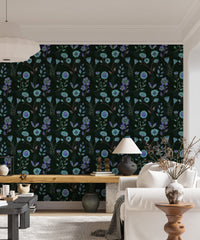 Bring enchantment to your walls with the Luminous Floral Whispers Bluish Tones Wallpaper. Featuring glowing blue and violet floral illustrations against a rich, dark background, this captivating floral wallpaper creates a soothing yet dramatic effect. Each petal seems to shimmer, offering a perfect balance between elegance and edge. Ideal for accent walls, bedrooms, or creative spaces, it transforms interiors with an artful, botanical charm. The intricate detailing and moody hues evoke a magical twilight garden, making it a standout choice for nature-inspired décor. Elevate your space with this bold, beautiful, and effortlessly stylish floral wallpaper design.