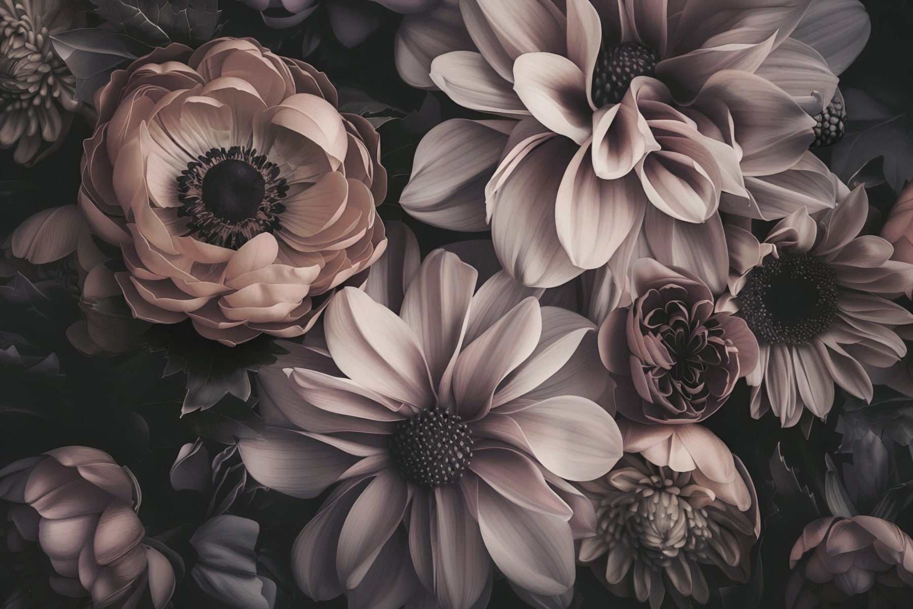 A wall mural of a luxurious floral pattern.