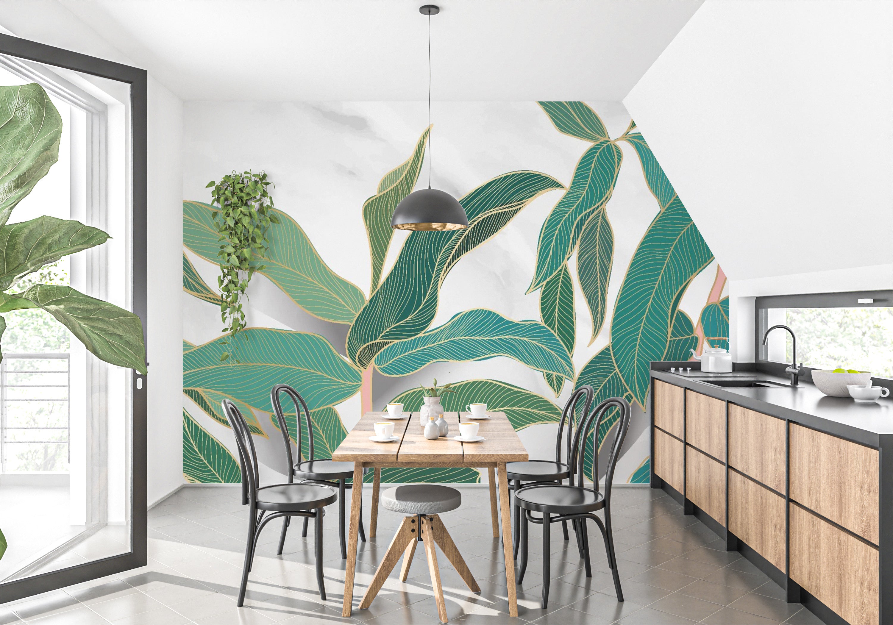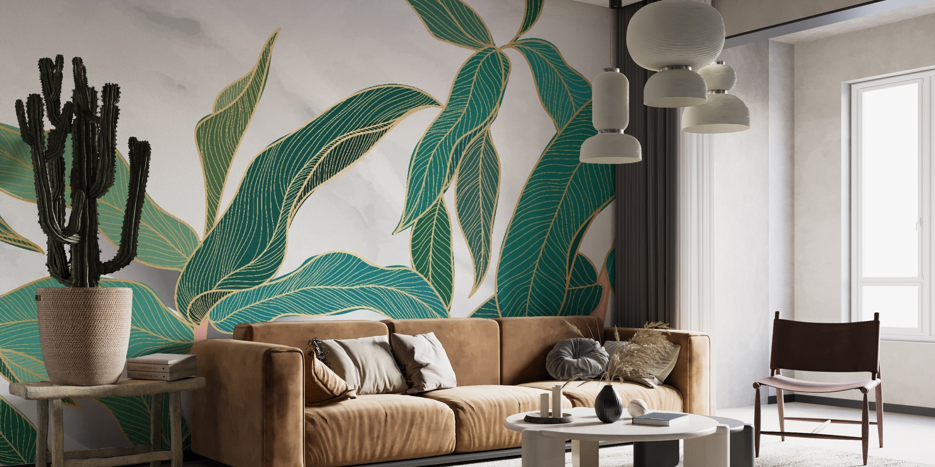 Tropical Gold Rimmed Leaves Wallpaper Art