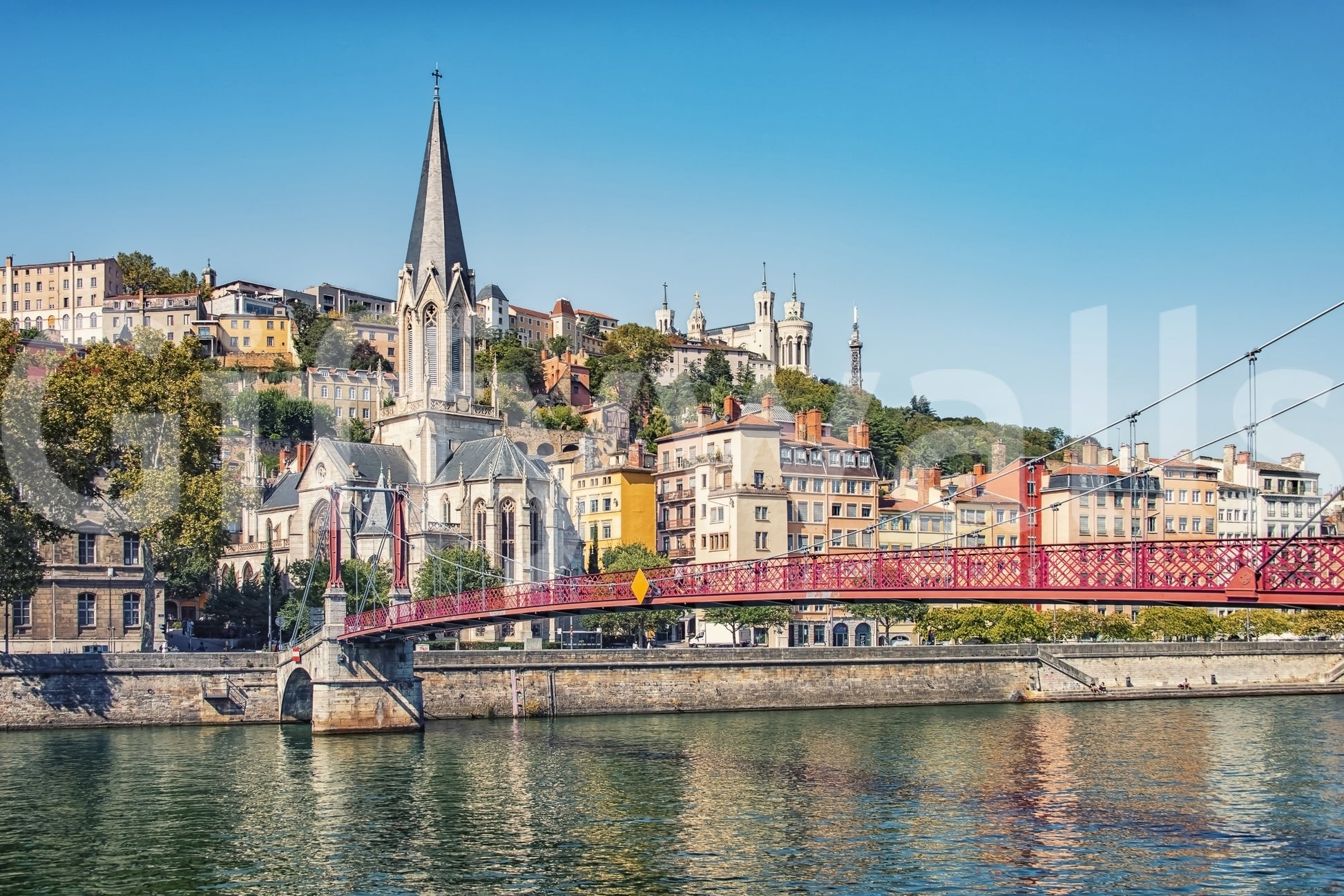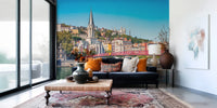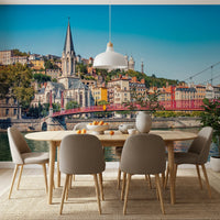Transform any room with this stunning view of Lyon. The red footbridge over the Saône River offers a captivating focal point, framed by historic buildings. The clear blue sky brings openness, while the church spires and hillside structures add depth. Install this wallpaper for walls in a living room, dining area, or hallway to create a sense of European charm. The balanced composition and vivid colours will complement both modern and classic interiors, adding a touch of wanderlust to your space.