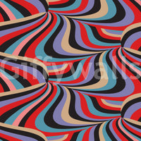 Swirling Groovy Retro Wallpaper – Dynamic abstract mural of marbled stripes in vivid multi-colored tones.