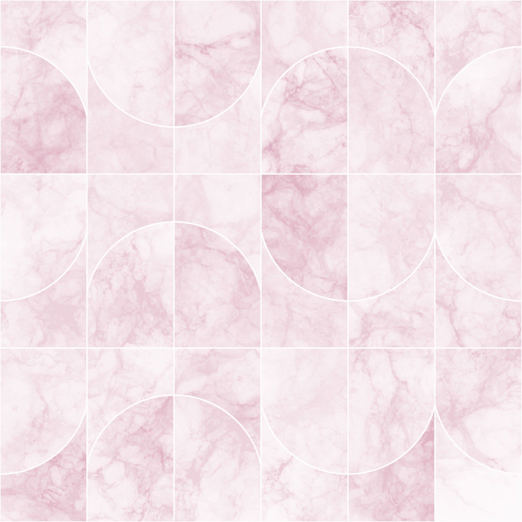 Indulge in the subtle sophistication of Marbled Geo Tiles Pinkish a wallpaper that seamlessly blends organic textures with modern geometric design. This captivating pattern features a soft, pinkish marble effect, subtly veined for an authentic stone appearance, creating a luxurious and calming backdrop. The design is structured into a grid of square tiles, each playfully bisected by clean, white arcs that form bold circular patterns. The pastel pink hues provide a gentle warmth, making it ideal for creating a serene atmosphere in bedrooms, bathrooms, or any space craving a touch of refined elegance. The combination of natural stone imitation with deliberate geometric shapes makes this wallpaper both timeless and trendsetting, lending an air of understated chic to your décor. Elevate your walls with this beautiful balance of nature-inspired art and contemporary design.