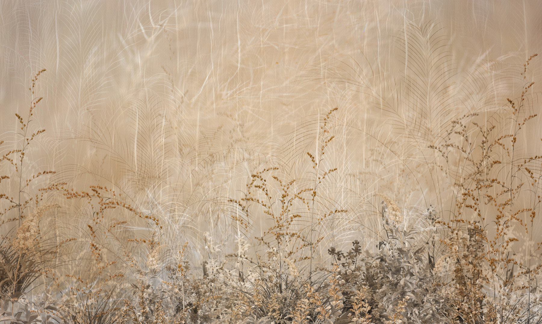 Invite a touch of nature into your home with this design showcasing delicate grasses in muted tones. This wallpaper for walls adds subtle texture and a soft color palette, making it perfect for spaces where relaxation is key. Imagine it in a bedroom, a quiet reading nook, or a light-filled living room. The warm beige and cream tones complement a range of decor styles, from modern to rustic, to create a gentle, inviting ambiance that feels effortless.