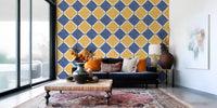 Mediterranean Rustic Checkerboard Aged Decoration - Yellow - Blue Wallpaper⁠