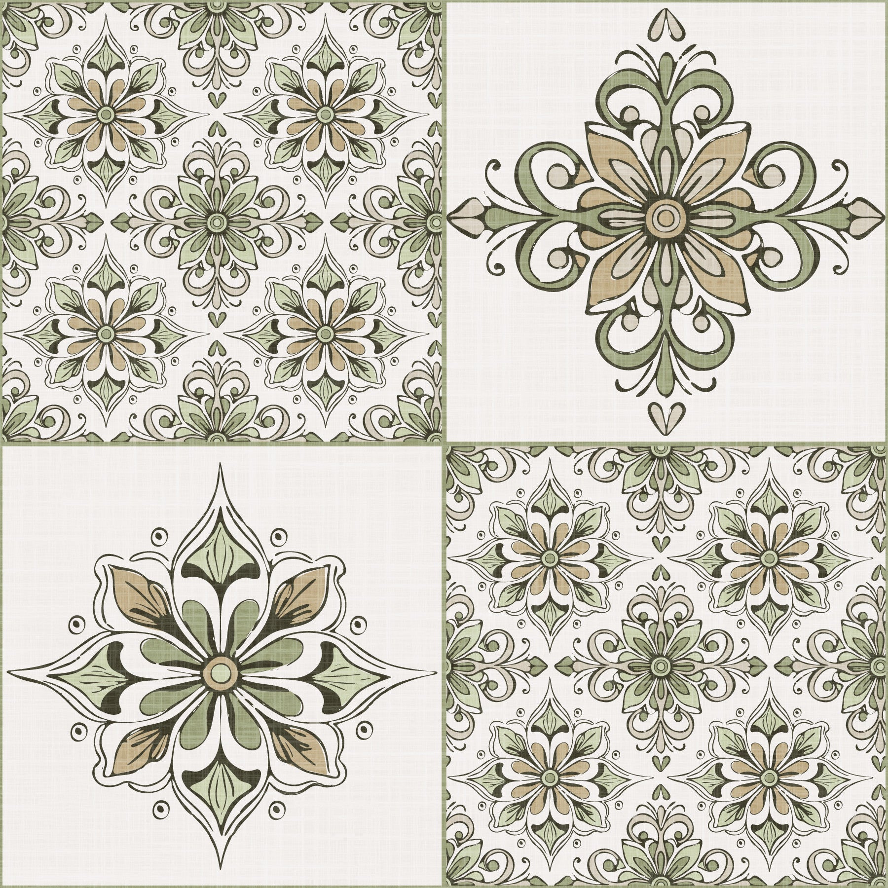Mediterranean Tile Rustic Charm Sage Green Wallpaper blends earthy tones with traditional motifs for a warm and grounded look. Featuring repeating tile-inspired patterns in soft sage, beige, and ivory, this mural wallpaper fits perfectly in dining spaces, kitchens, or entryways. The rustic floral elements and symmetrical design offer a handcrafted feel that adds interest to plain walls. This wall mural creates a calm, timeless setting and pairs well with wooden or stone textures. Whether you're refreshing a farmhouse-style corner or updating a classic interior, this wallpaper for walls makes an effortless visual statement with balanced detail.