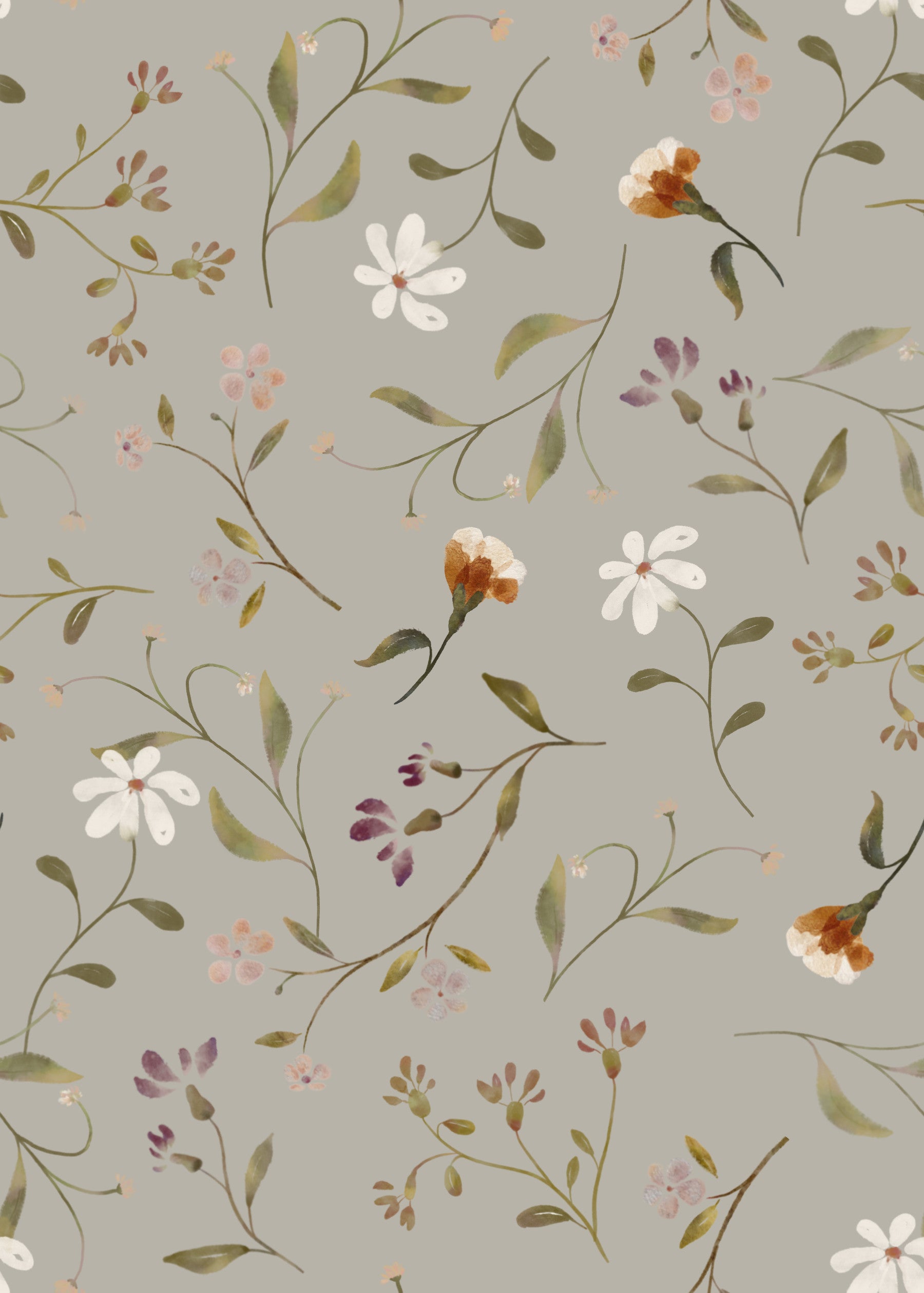 Evocative of a gentle, sun-dappled meadow, 'Memories in Petals Wallpaper⁠ Olive' captures the essence of wistful remembrance. Delicate watercolor blooms in muted olive, cream, and russet hues dance across a soft grey backdrop. The seemingly effortless arrangement of wildflowers and slender stems creates a calming, nostalgic atmosphere. This wallpaper is perfect for those seeking a serene and understated floral design that whispers of cherished moments and peaceful contemplation. The earthy color palette evokes a sense of tranquility and timeless beauty, making it a versatile choice for any room.