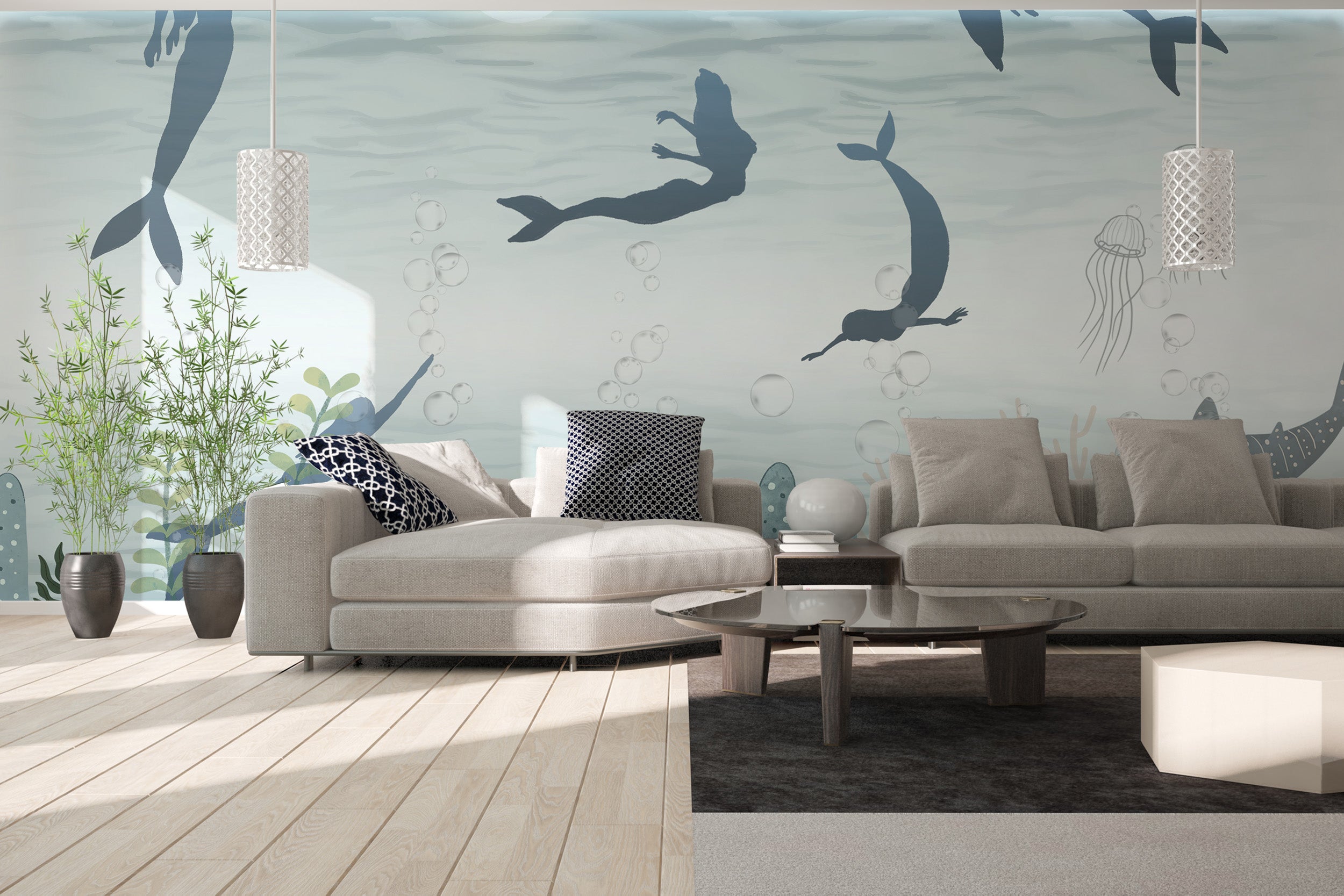 Mermaid Whispers Ocean Mural peel and stick wallpaper