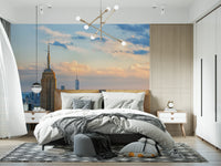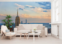 Bring the vibrant energy of a cityscape into your living space. This wallpaper for walls features a breathtaking panorama of a bustling metropolis at sunset, displaying iconic structures silhouetted against a colourful sky. Soft hues of orange and blue create a tranquil atmosphere. This wall covering delivers a bold statement, suited for modern and minimalist interiors. Install this design in your entryway, dining area, or study, and enjoy the ambience. It enlivens your rooms, complementing neutral furniture and amplifying natural light, making every day feel like an urban escape.
