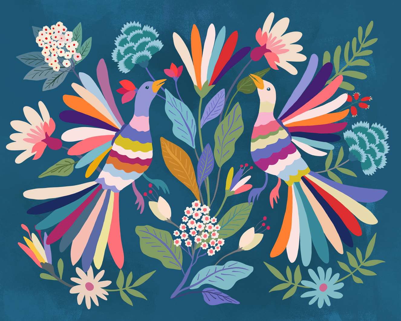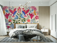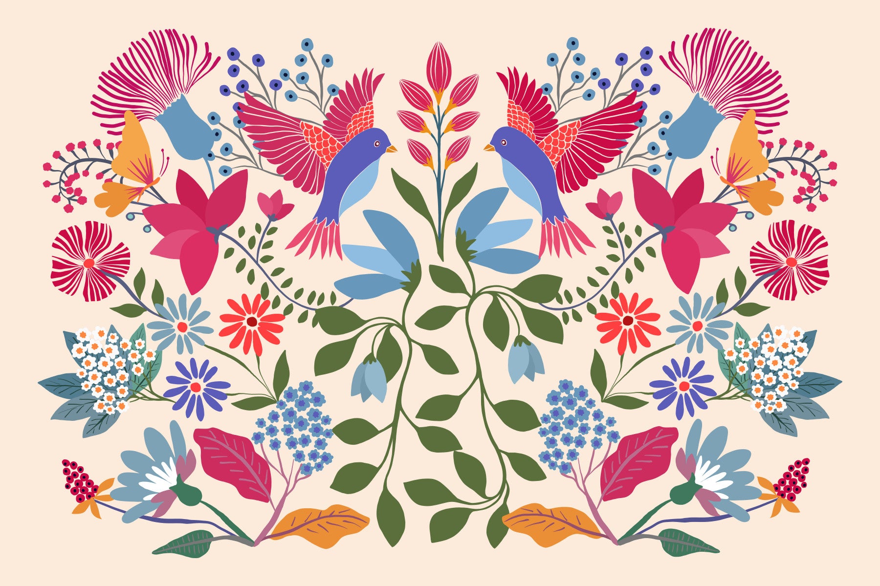 Invite the vibrant spirit of Mexico into your space with this captivating wall décor. "Mexican Garden" bursts with the warmth and cheer of a sun-drenched hacienda, rendered in a stylised, folk-art aesthetic. Symmetrical arrangements of stylised flora in a kaleidoscope of colour – deep reds, tranquil blues, and sunny yellows – bloom against a soft, neutral backdrop. Flitting butterflies and stylised birds with crimson wings add a touch of whimsy and movement. This design evokes the artistry of traditional Mexican textiles. This piece is ideal for adding a touch of joyful elegance to any room, transforming your walls into a canvas that celebrates the beauty and culture of Mexico. Transform your space into a vibrant and inviting sanctuary, echoing the rich traditions of Mexican art.