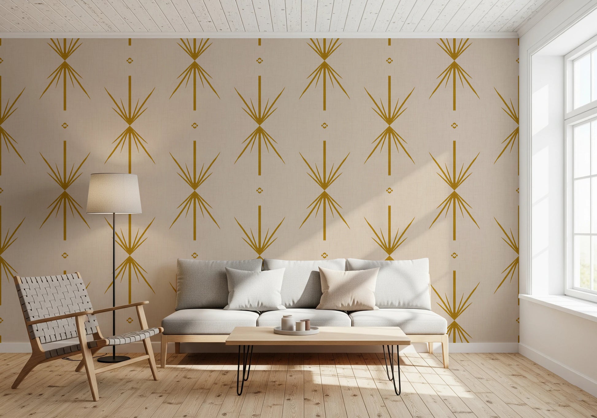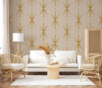 Mid Century Modern Atomic Starburst Cross Mustard Wallpaper⁠