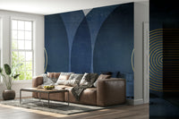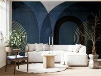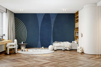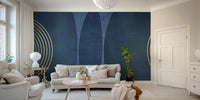 Introduce a touch of elegance to your home with this modern mid-century inspired wallpaper design. The deep blue hues paired with sophisticated golden geometric lines create a timeless piece, perfect for any living room, bedroom, or office. Combining retro charm with contemporary flair, this wallpaper is ideal for those looking to make a bold yet refined statement. Update your space with these captivating visuals that effortlessly blend the past and present, making your walls a conversation starter.
