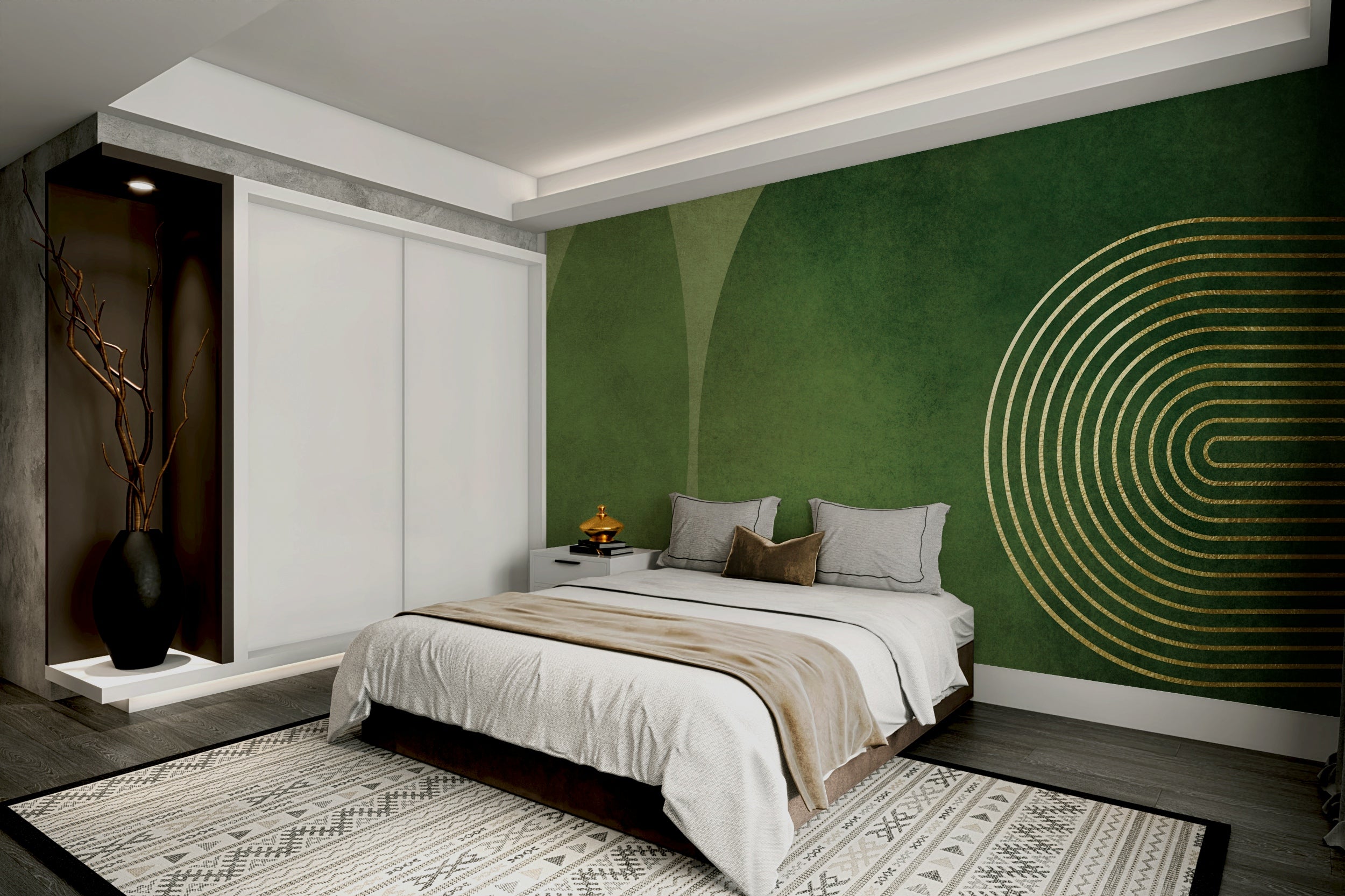 Transform your space with a stunning mid-century modern design featuring lush green hues and sleek geometric patterns. This wallpaper brings a touch of retro elegance that complements any room with its bold yet soothing aesthetic. Perfect for creating a striking accent wall or adding a vintage vibe to your decor, this design captures the spirit of a timeless era. Let the harmonious blend of shapes and colors inspire your creativity and redefine your interiors with style and grace.