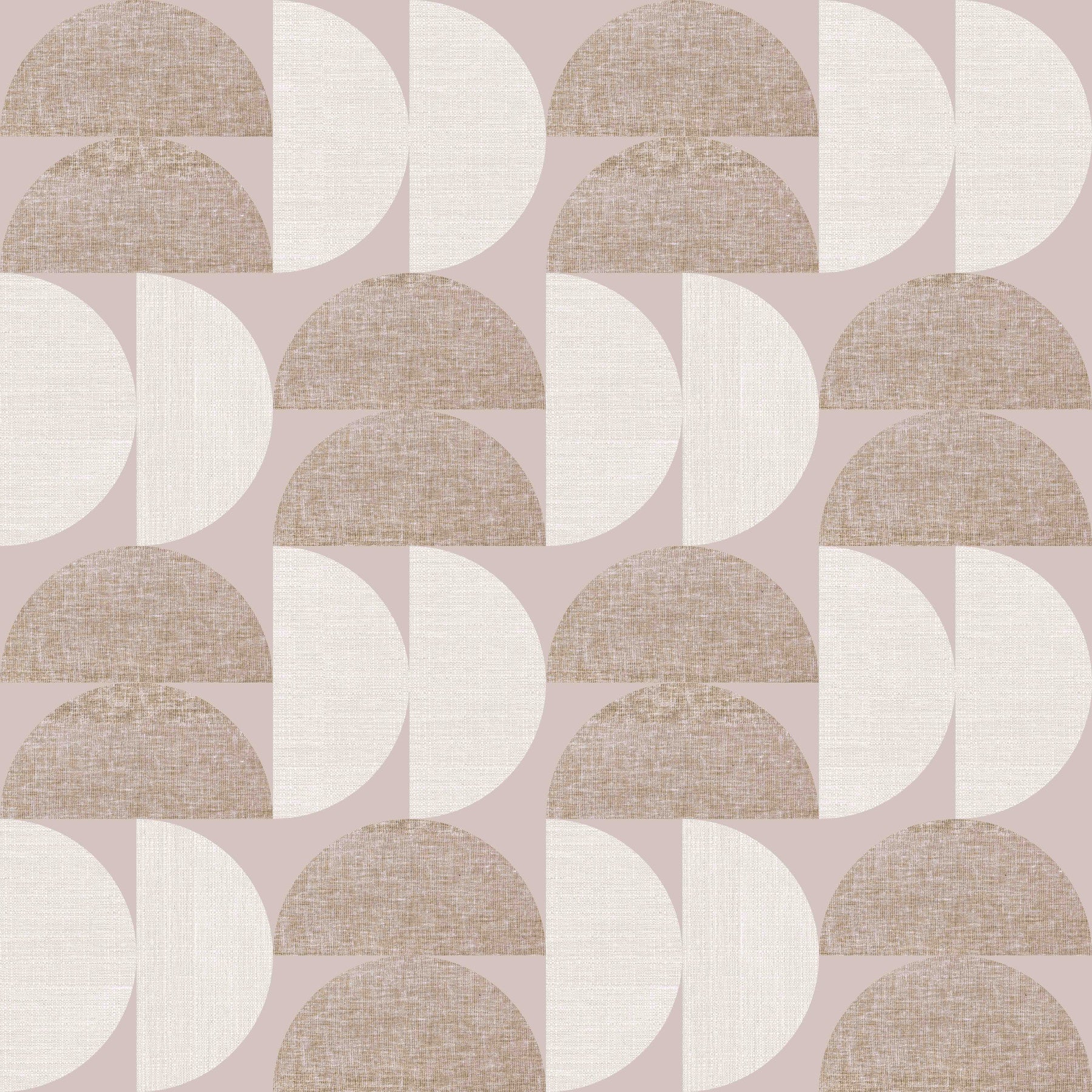Embrace the subtle beauty of 'Textured Harmony,' a wallpaper design that blends geometric precision with organic warmth. The repeating pattern features interlocking semi-circles, rendered in a pleasing palette of soft blush, creamy white, and linen beige. Each shape boasts a tactile, textured surface, evoking a sense of handcrafted artistry. This design exudes a tranquil, sophisticated mood, perfect for creating a calming and inviting atmosphere in any space. The understated elegance of 'Textured Harmony' adds a touch of refined charm without overwhelming the senses.