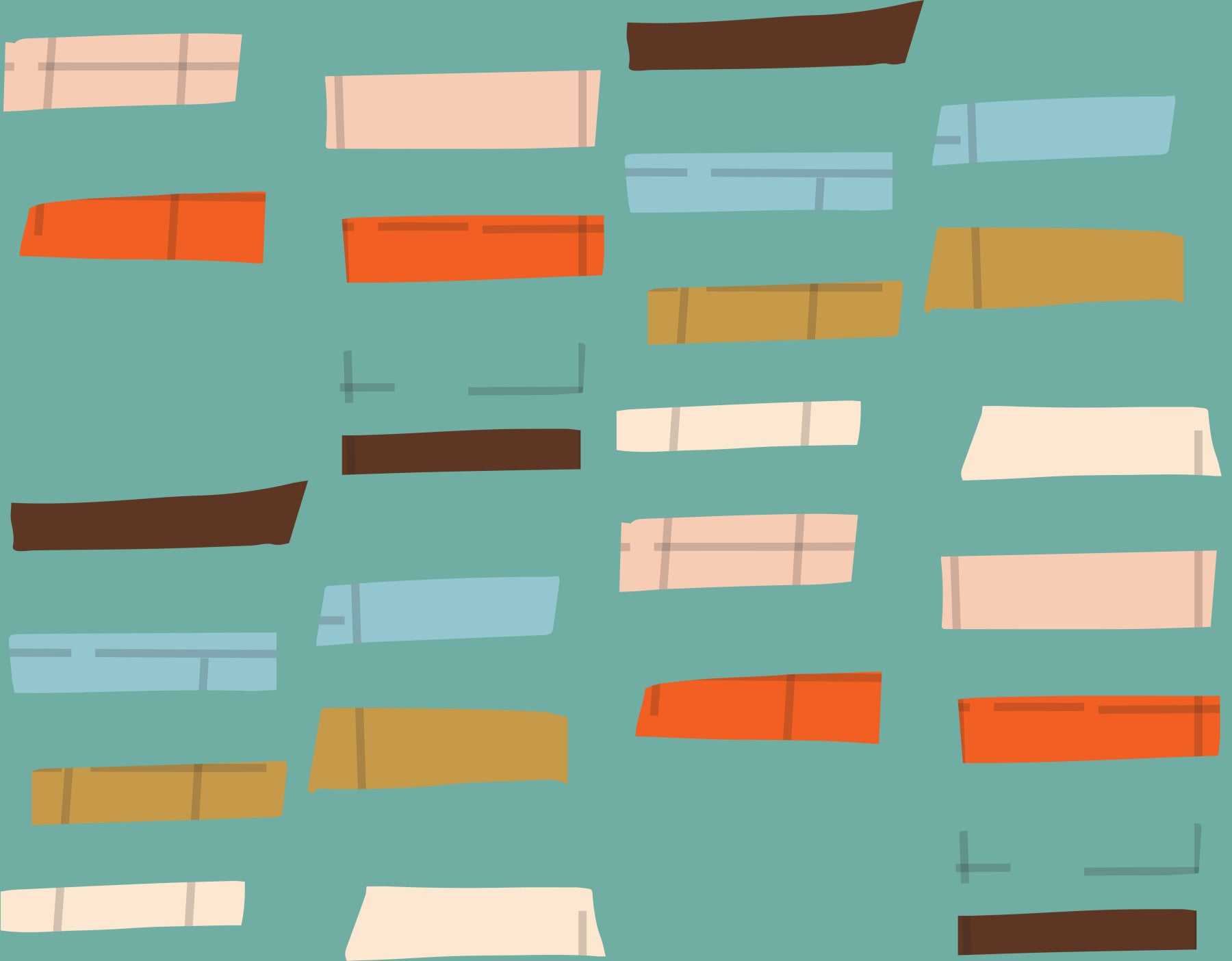 Evoke a sense of retro cool with 'Mid Mod Stacked Blocks Blue,' a wallpaper design that celebrates the iconic aesthetic of the mid-century modern era. This playful pattern features an array of stylized rectangular blocks in a harmonious palette of blues, oranges, browns and creams, all set against a serene blue-green background. The blocks are 'stacked' in a seemingly random fashion, injecting a sense of dynamic energy and visual interest into any space. Reminiscent of vintage textile designs and architectural motifs, this wallpaper adds a touch of sophisticated whimsy to your home. Perfect for accent walls, nurseries, or any room where you desire a nostalgic nod to the past with a fresh, modern twist. Let this vibrant and engaging wallpaper transform your space into a mid-century masterpiece.