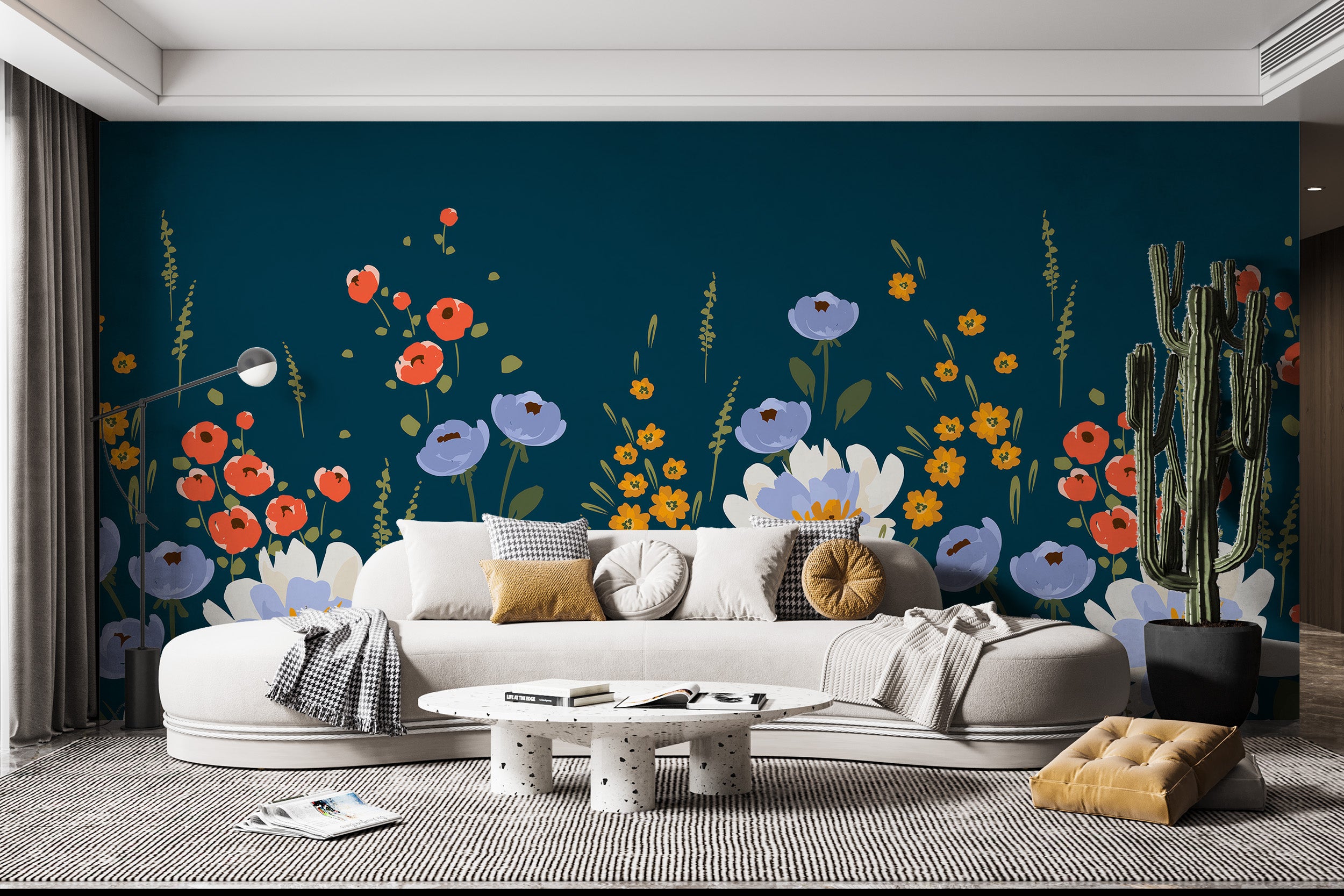 Drift into a nocturnal haven with the Midnight Garden Floral Mural, a masterpiece of watercolor wallpaper that whispers tales of moonlit meadows. This enchanting array of blooms set against a deep twilight sky creates a mystical escape in any room. Painted with a delicate hand, each petal and leaf boasts a lifelike quality, inviting the stillness of night and the vibrant dance of flora into your home. The seamless marriage of colors offers a visual symphony, captivating the gaze and igniting the imagination. Perfect for those seeking to infuse their walls with the poetry of nature's nighttime beauty.