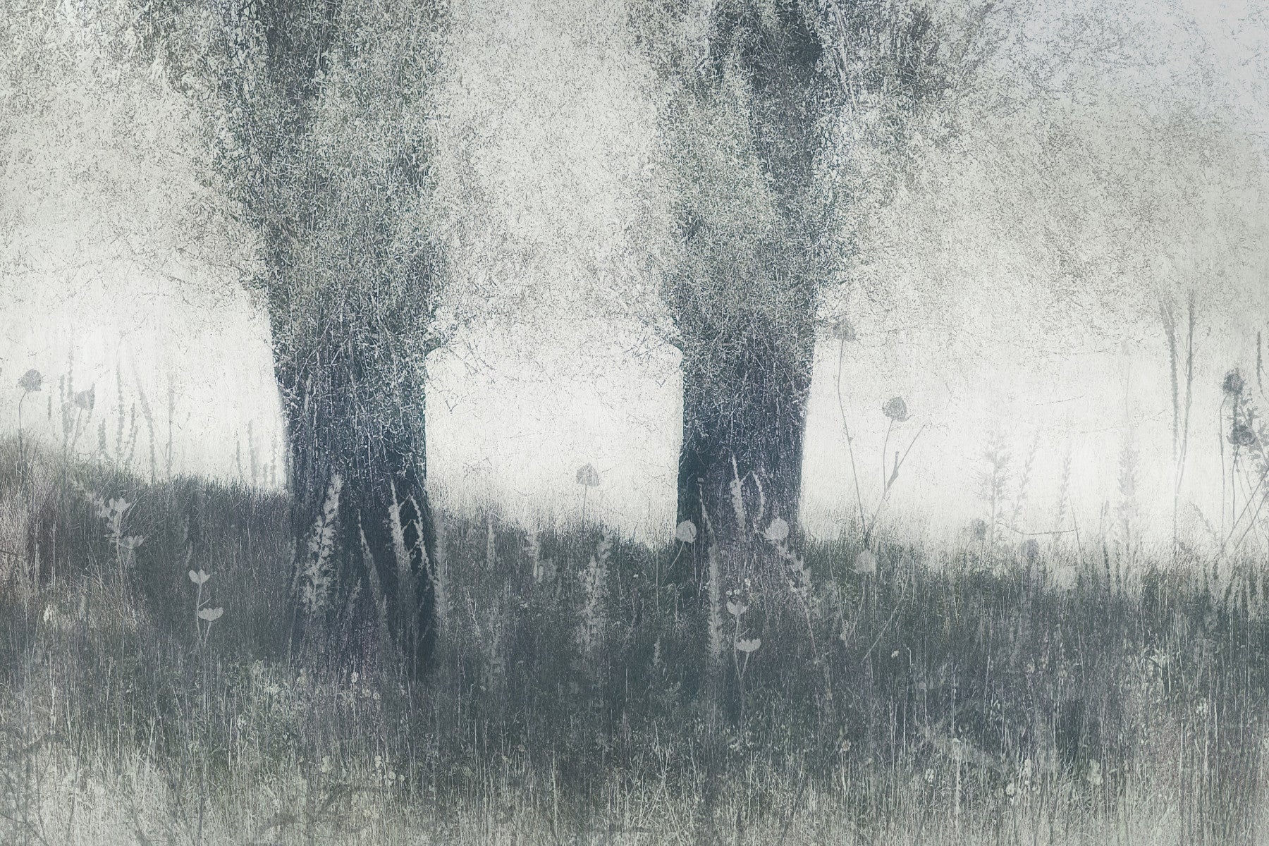 A graceful subtle fog texture wall mural in cool, natural tones.
