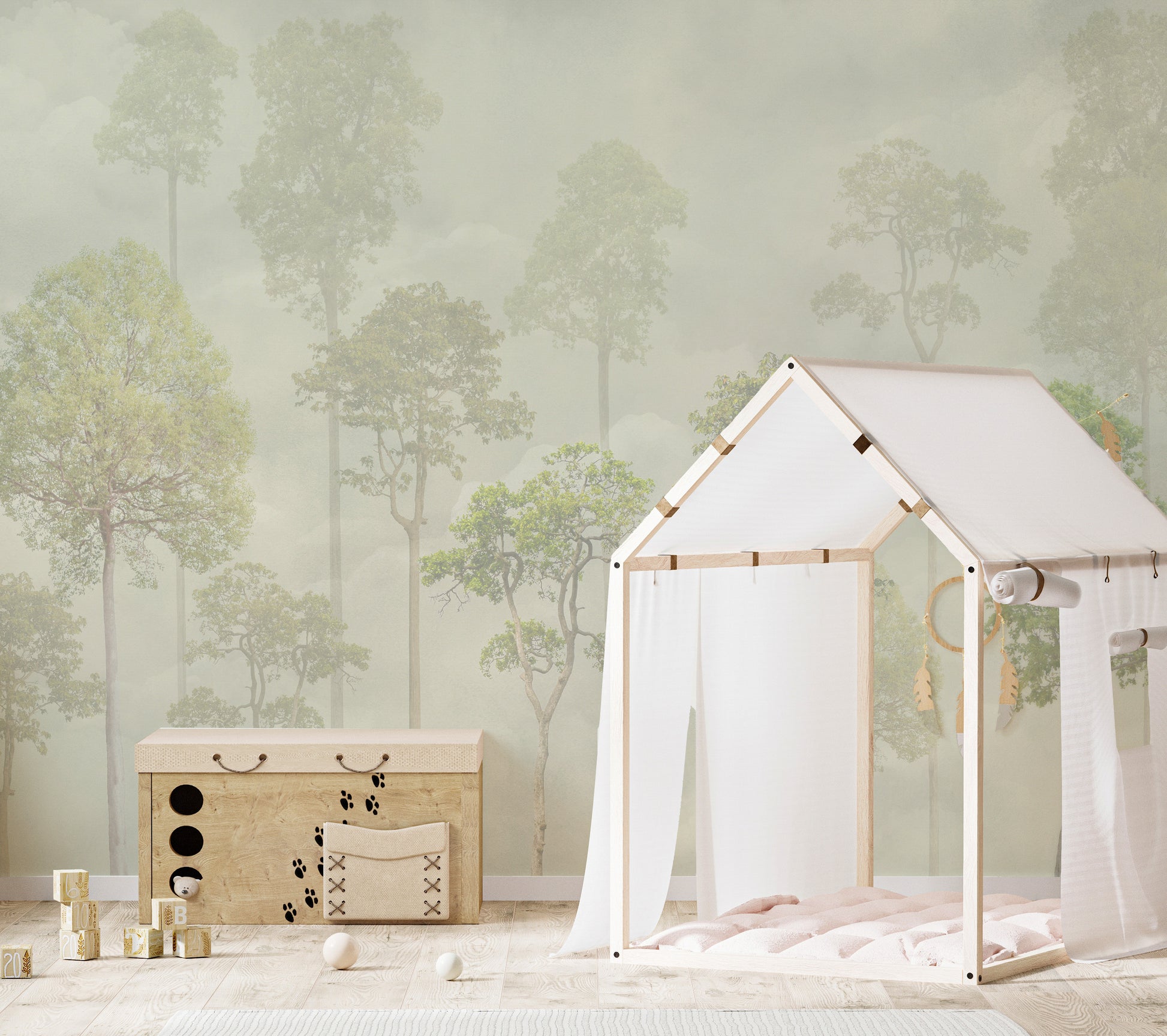 Step into the tranquil embrace of the wild with our Misty Forest Green Wallpaper. This serene mural captures the ethereal beauty of tall forest trees enveloped in a soft morning mist. The delicate layering of greens and greys adds depth and calm, making it ideal for bedrooms, living rooms, or meditative spaces. Each tree seems to whisper a story, inviting you to unwind and reconnect with nature. Easy to apply and remove, this wallpaper transforms your walls into a dreamlike forest haven. Perfect for those who crave a touch of the wilderness, without leaving the comfort of home.