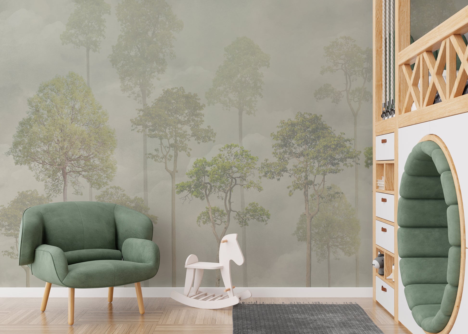 Misty Forest Green Wallpaper