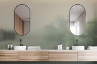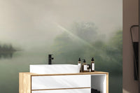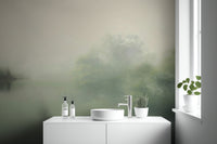 The misty forest landscape wallpaper captures the beauty of a fog-covered woodland, blending muted greens and soft beige tones for a peaceful effect. This serene nature wall mural features delicate trees and a calm water reflection, offering a soothing focal point for bedrooms, living rooms, or offices. The subtle gradients and hazy details create depth while maintaining a minimalist feel. Perfect for modern or rustic spaces, the foggy woodland wallpaper design complements neutral furnishings and natural textures. Its calming visual appeal brings the essence of quiet forests indoors, adding a gentle, nature-inspired touch to any space.