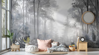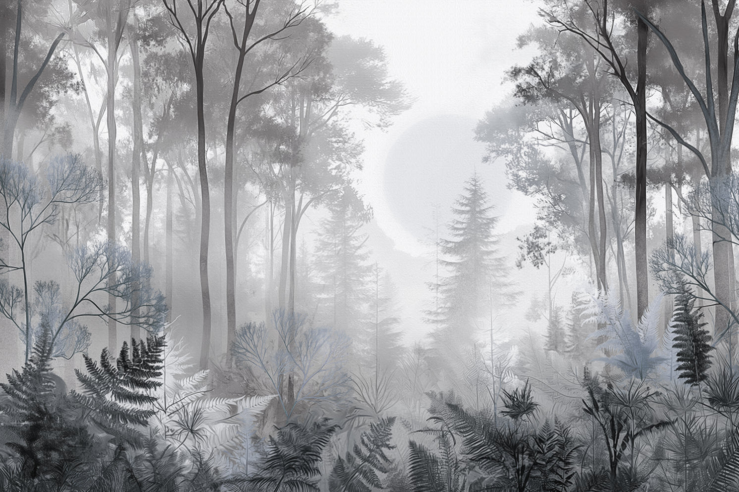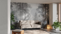 Bring the beauty of nature indoors with the Misty Monochrome Forest Wallpaper Mural. This foggy wood wallpaper creates a serene atmosphere with delicate mist weaving through tall trees and dense foliage. The black-and-white nature mural enhances any space with a timeless and sophisticated look. Designed for modern interiors, this monochrome forest mural adds depth and character to walls, making rooms feel calm and inviting. The high-quality print captures every detail, from the soft light filtering through the trees to the intricate ferns. Perfect for bedrooms, living areas, and offices, this elegant tree silhouette mural brings nature's charm inside.