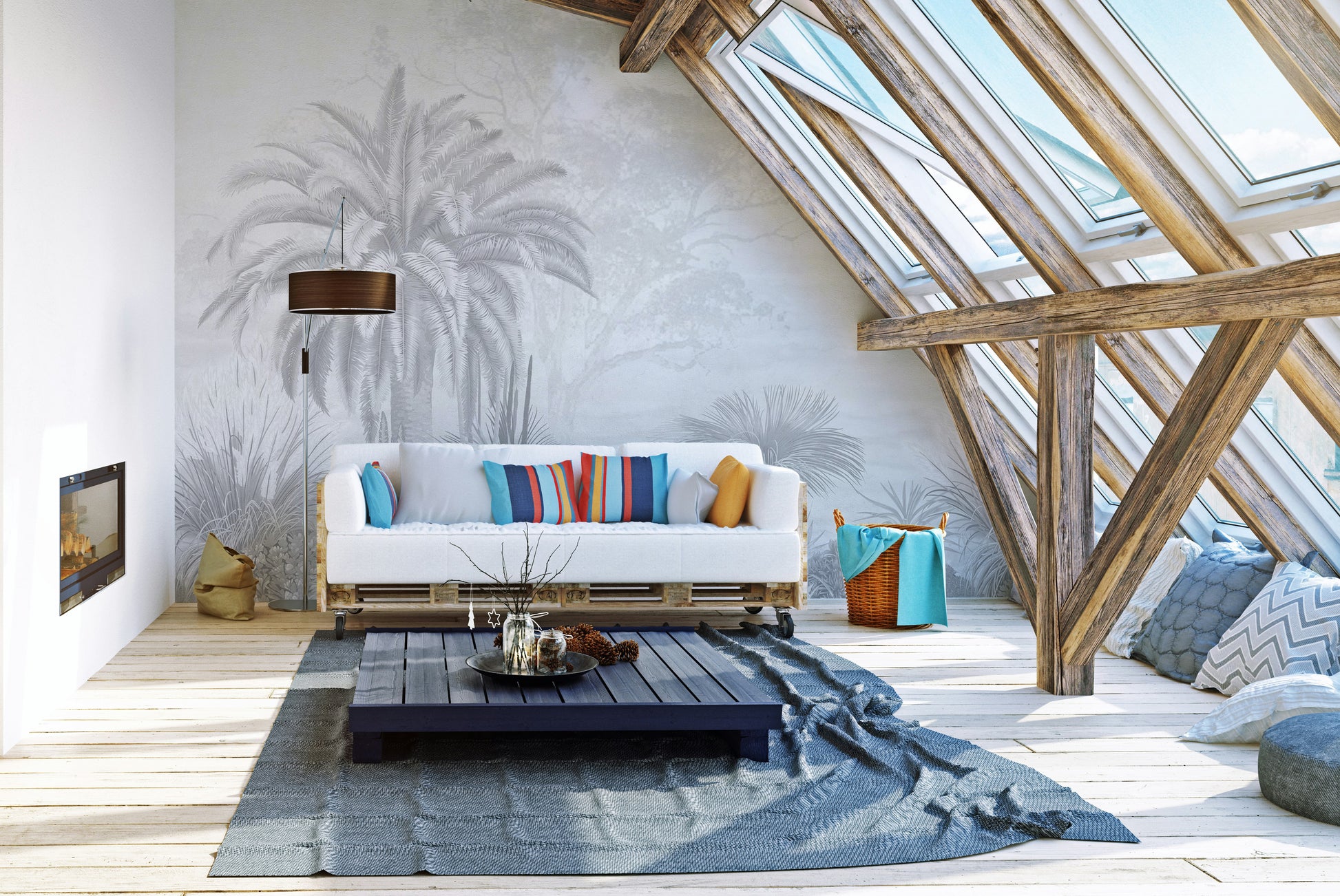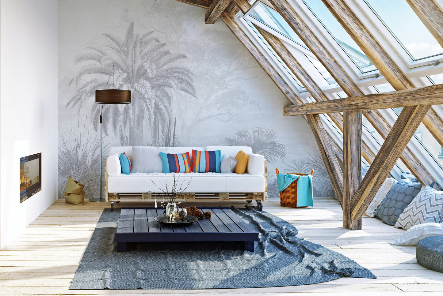 Grey tropical palm wallpaper for living rooms