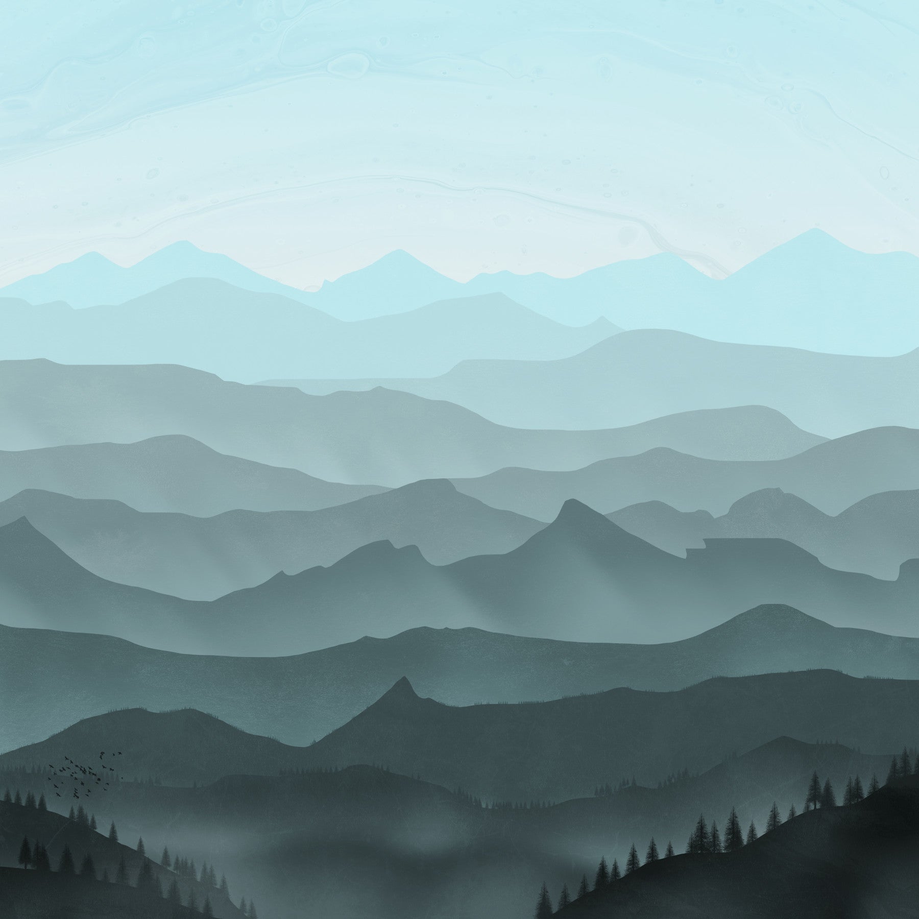 Misty Mountain Layers Wallpaper – Serene Landscape Design