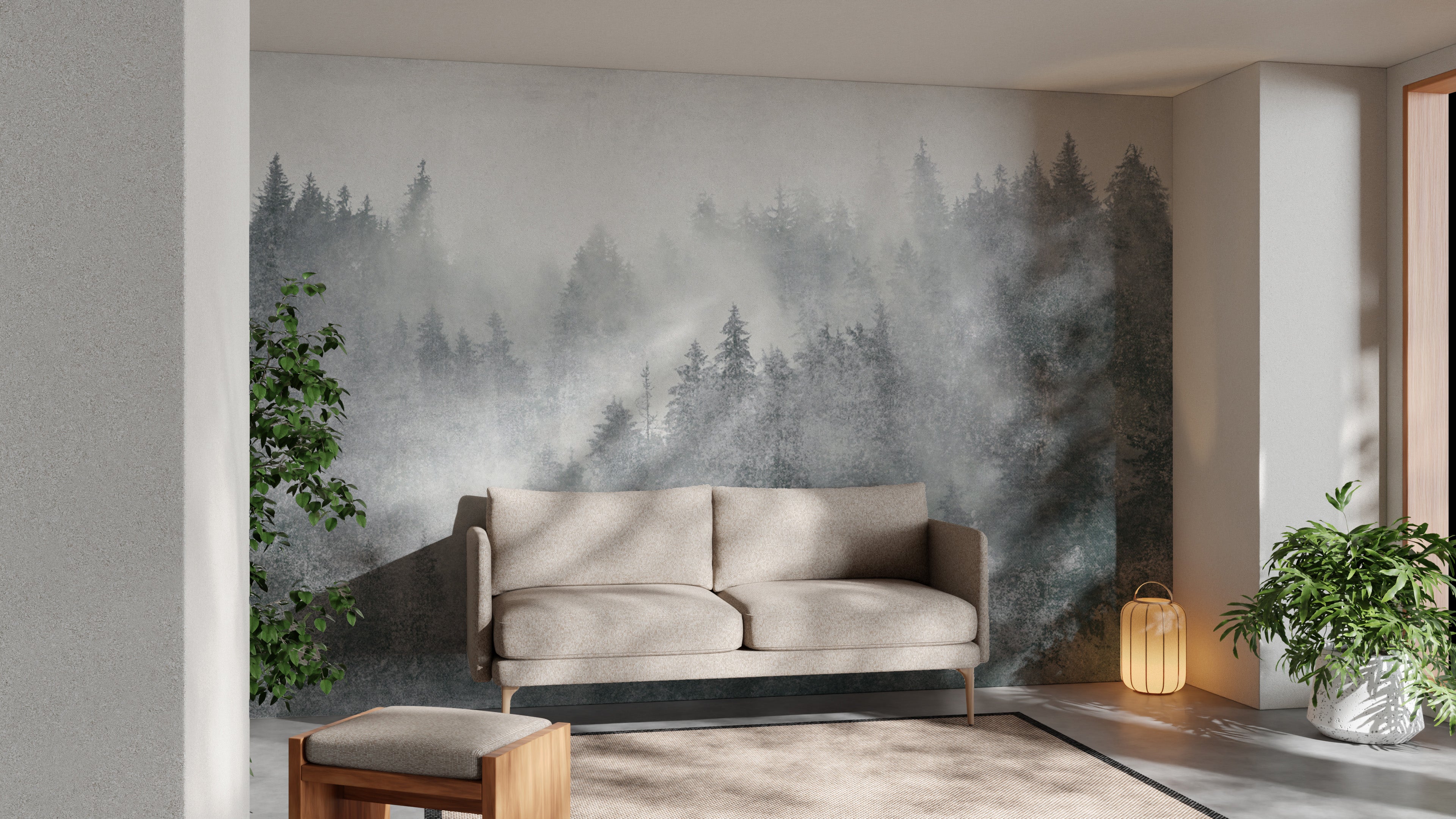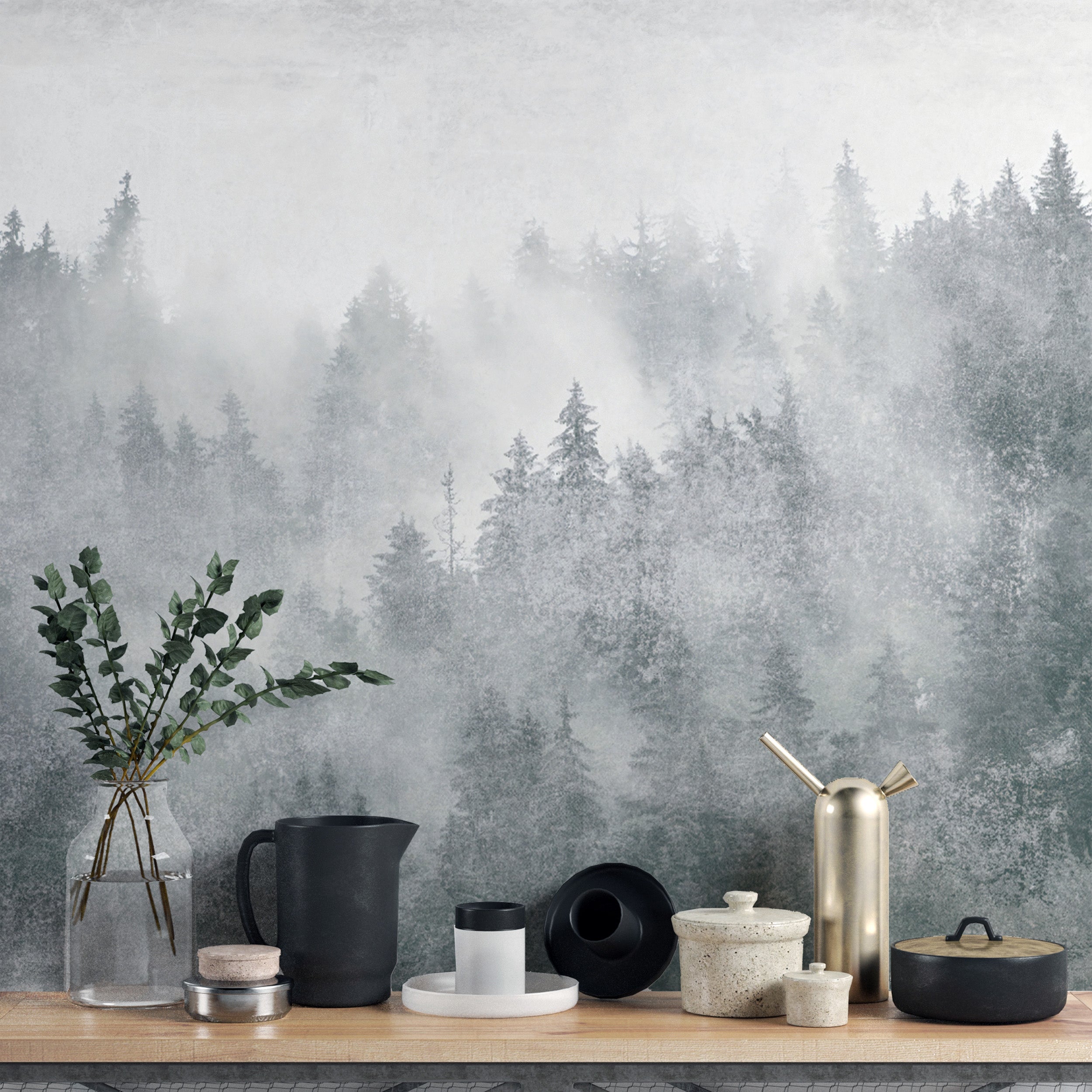 Nature-inspired misty forest wallpaper for peaceful spaces
