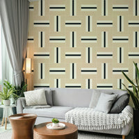 Inject a touch of modern abstraction into your space with this striking wallpaper. Its composition of bold black lines against a muted beige backdrop creates a dynamic yet balanced visual effect. The design is simultaneously minimalist and captivating, offering a sophisticated touch to contemporary interiors. Its versatility makes it suitable for various spaces, adding a hint of edgy refinement to your décor.