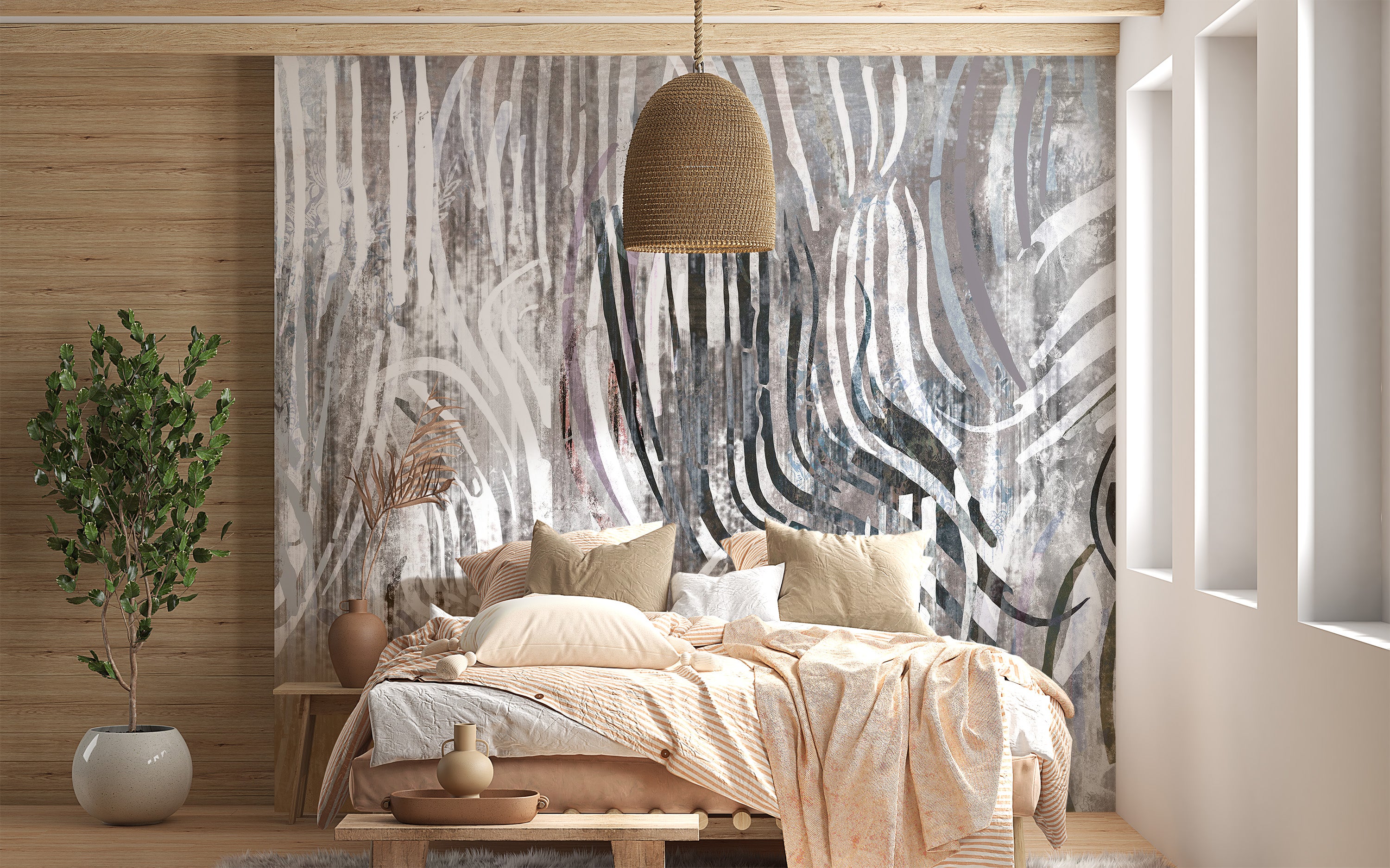 Experience the artistic allure of the modern abstract wallpaper mural, a perfect addition to your bedroom. This captivating design features a blend of flowing lines and muted tones, creating a dynamic visual effect that adds depth and character. The intricate patterns and textures evoke a sense of movement and sophistication, making it an ideal focal point. Whether you prefer contemporary or classic aesthetics, this mural seamlessly integrates into any style, adding a unique touch to your personal haven. Redefine your bedroom with this stunning abstract masterpiece, and let the interplay of shapes and colors inspire your everyday moments.