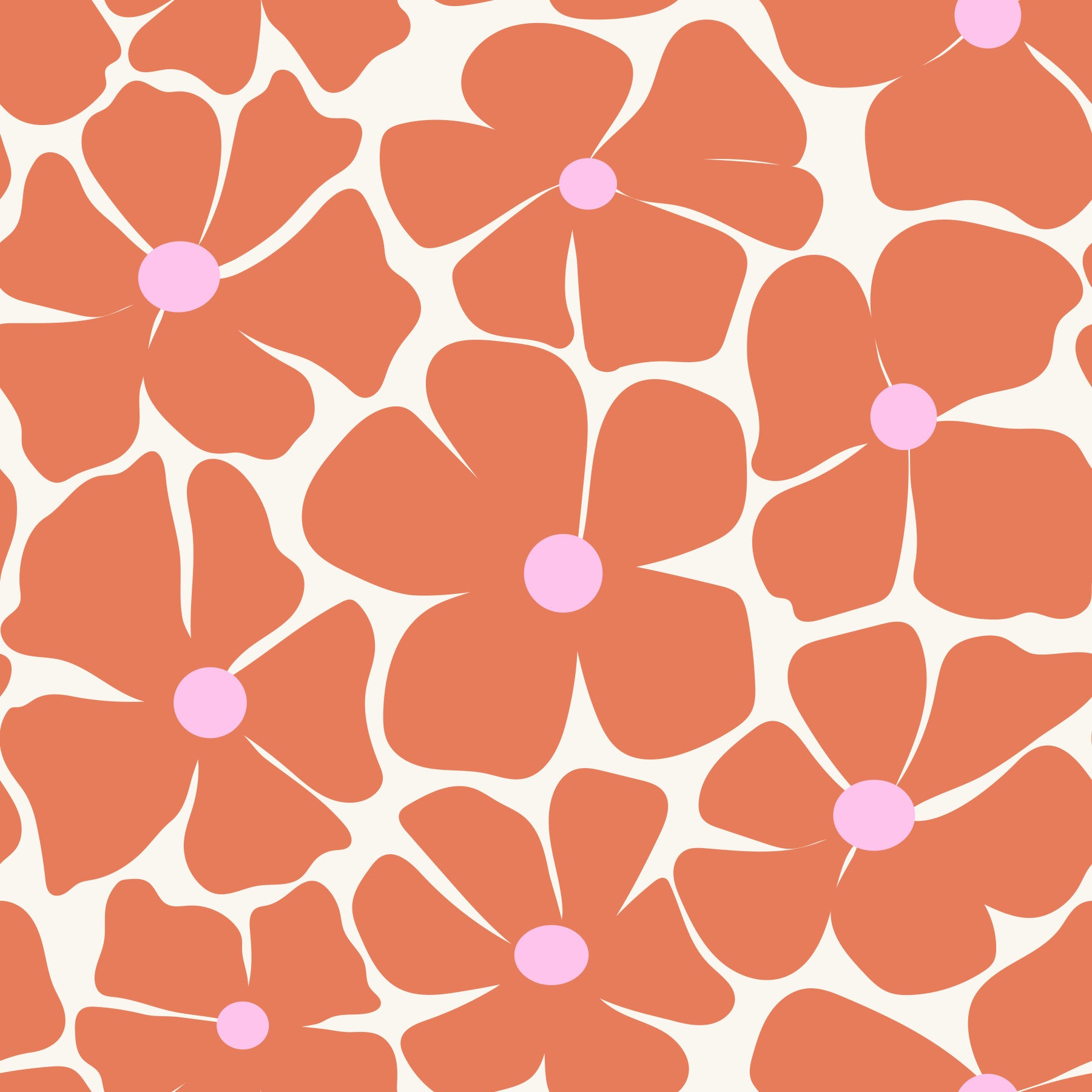 A contemporary take on floral wallpaper, this design features a vibrant coral and soft pink color palette. The bold, stylized flowers are rendered in a seamless pattern, creating a dynamic yet balanced visual rhythm. The clean lines and simplified forms lend a modern, sophisticated aesthetic, suitable for a range of interior styles, from mid-century modern to contemporary minimalist. The cheerful color palette adds a warm and inviting touch to any room. This wallpaper is perfect for adding a touch of modern elegance without overwhelming the space.