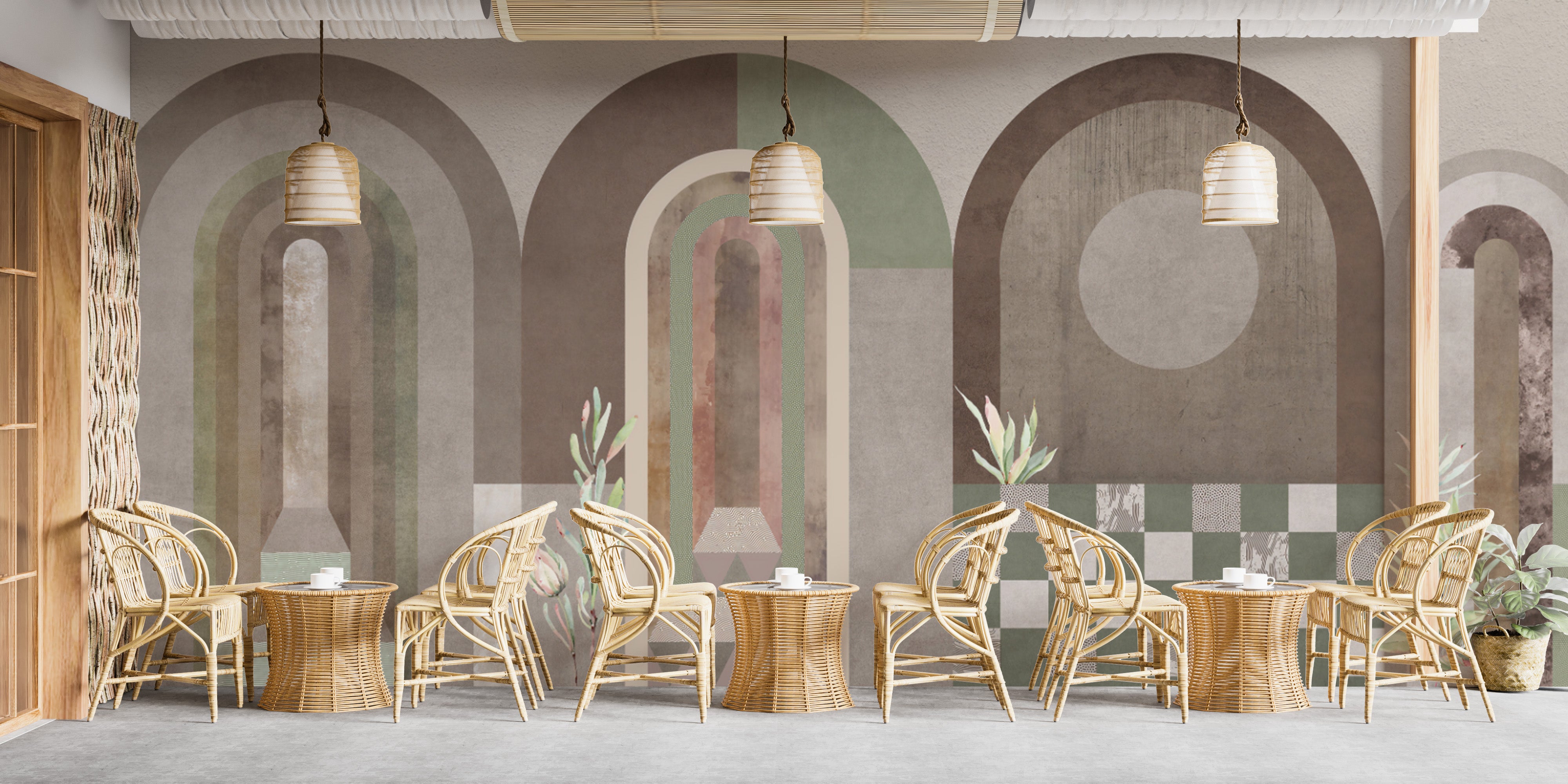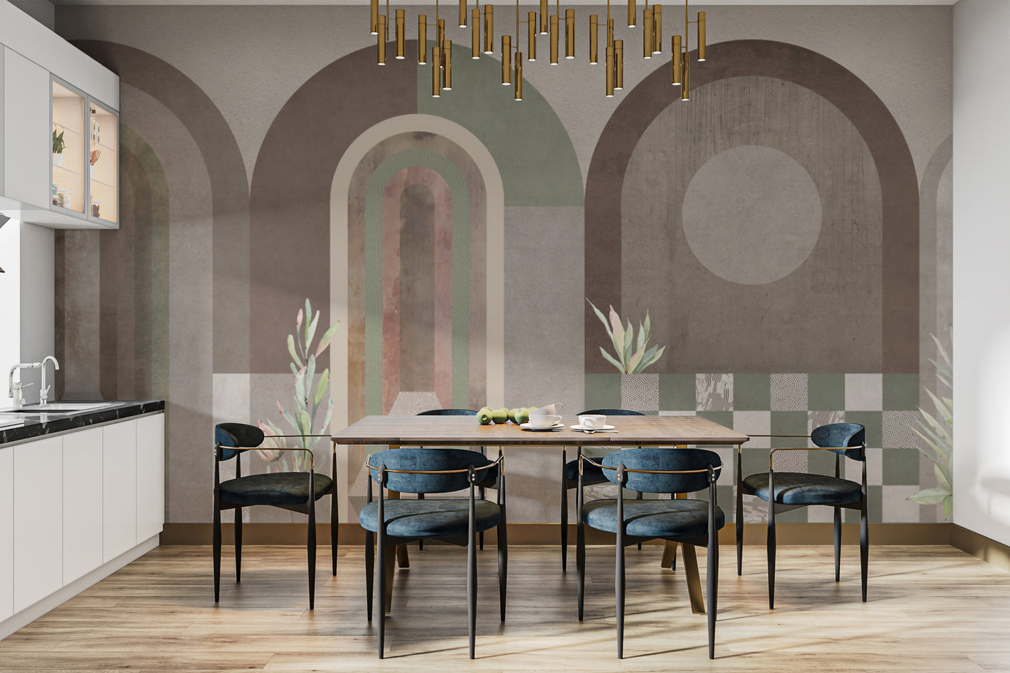 Transform your environment with the modern geometric arch mural, a sophisticated combination of geometric arch wallpaper and modern art. The effect of this contemporary abstract mural is layers of arches, elaborate floral embellishments, and textured designs, which, together, form a harmonious background for a sophisticated visual focus in any enclosure. Aimed at adding richness and refinement, it is in harmony with the classic arch design wallpaper trends and the soft, muted, earthy colors. Whether enhancing a living room, office, or bedroom, this artistic geometric wallpaper adds a timeless charm. Enhance your interior with this modern arches wall art, combining vintage and contemporary styles. Easy to install and stable, it's just the thing to give a décor amendment.